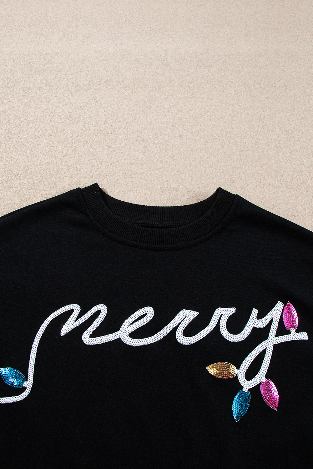 Le pull présente des manches longues et un col rond pour une coupe confortable mais élégante. Les détails en paillettes ajoutent un éclat festif, ce qui le rend idéal pour les fêtes de fin d'année ou les occasions spéciales.