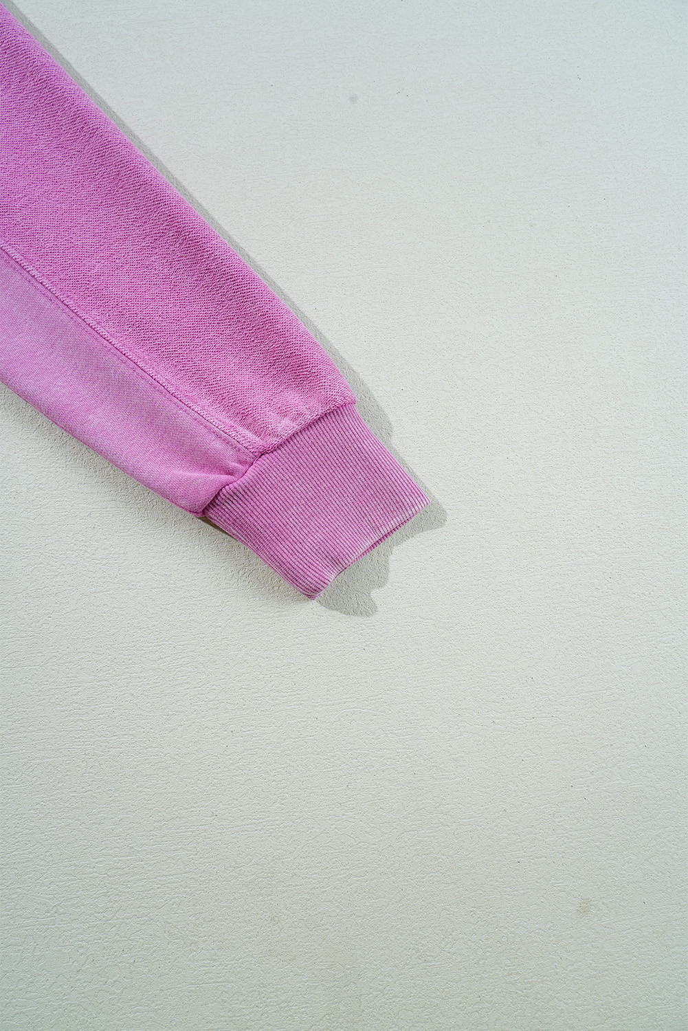 Sweat-shirt rose vif à épaules tombantes et col cranté de couleur unie