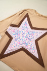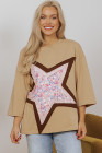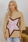 Haut à manches 3/4 en patchwork d'étoiles et de fleurs camel