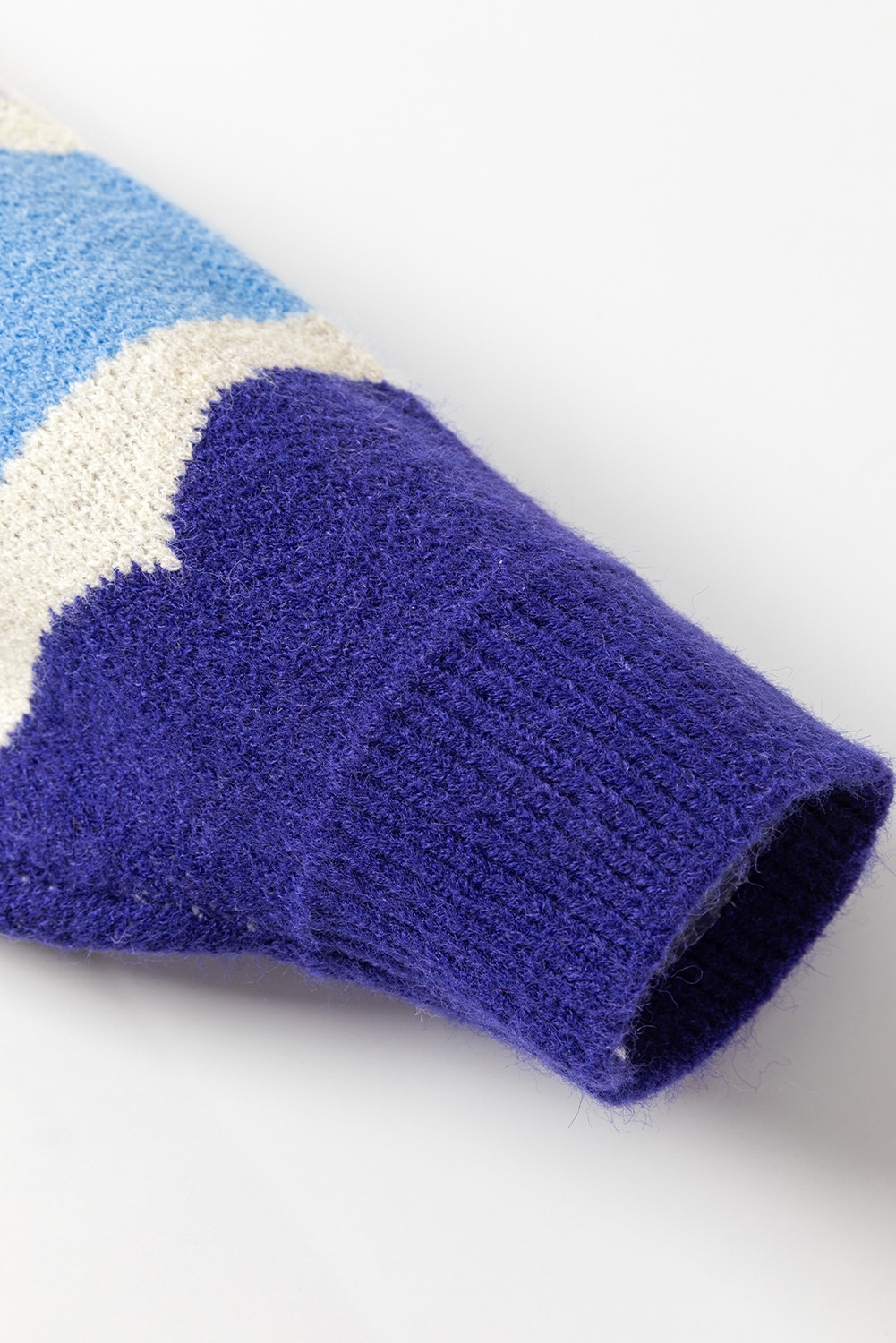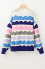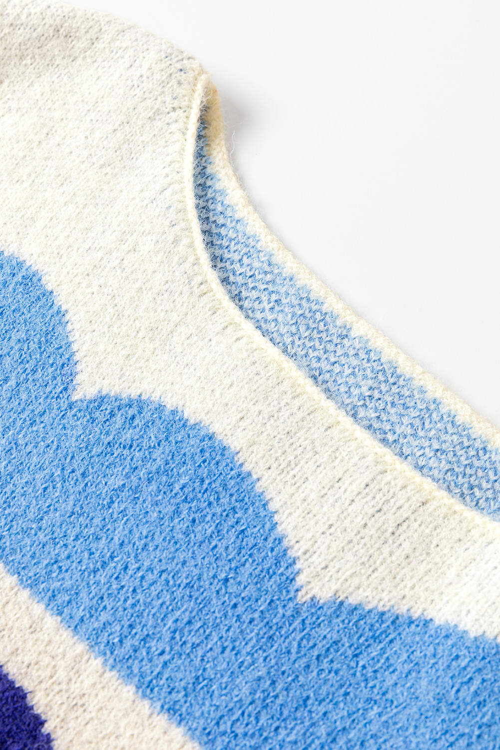 Pull à épaules tombantes et manches ballon rayé bleu foncé