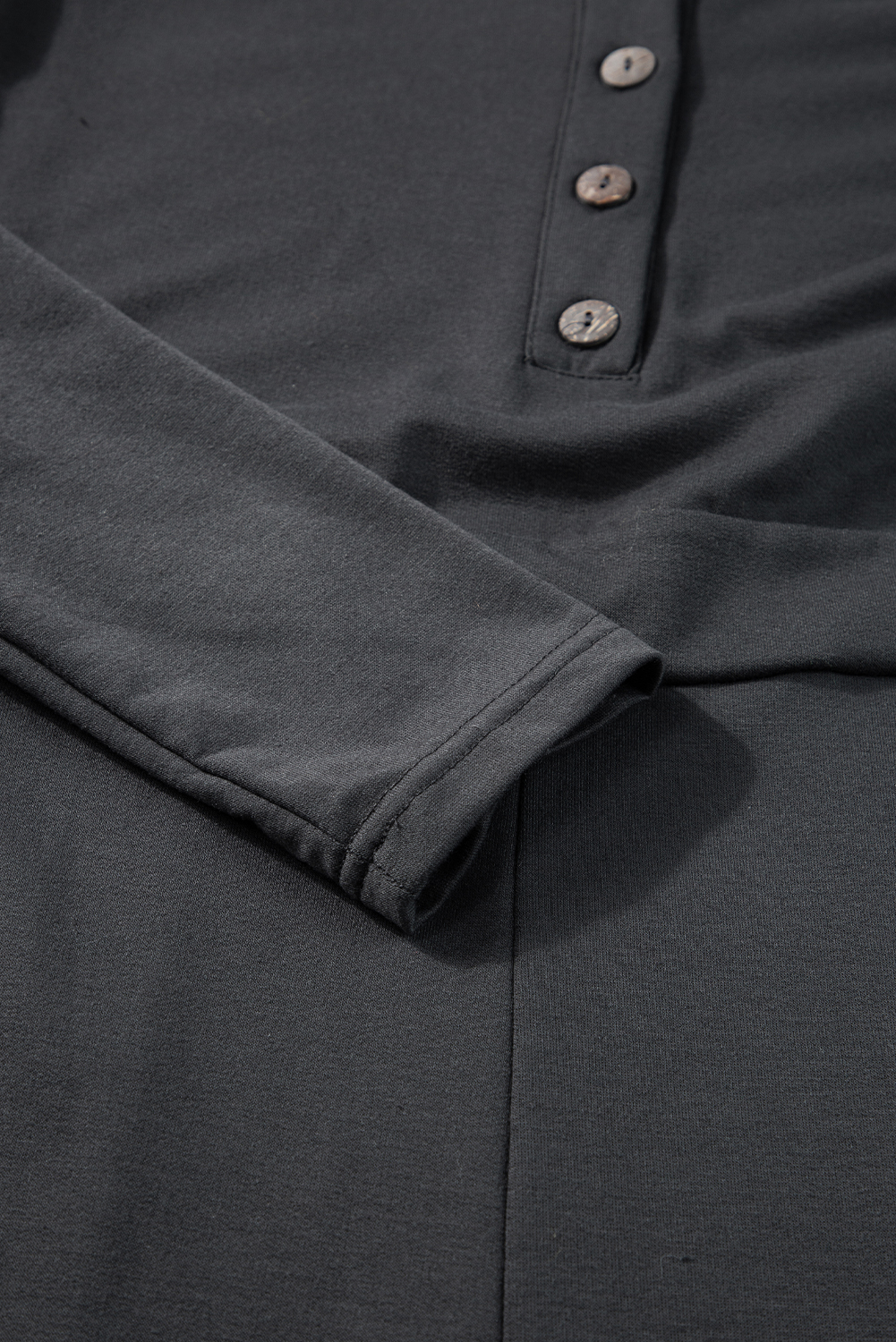 Le devant boutonné et les manches longues ajoutent une touche sophistiquée.