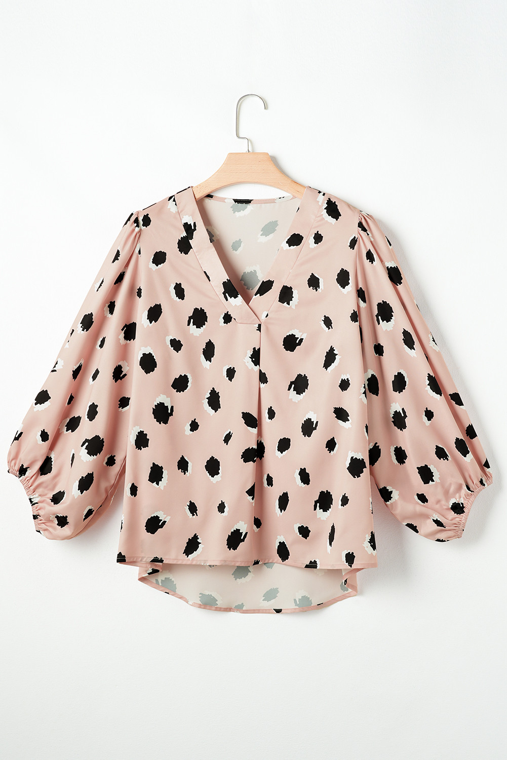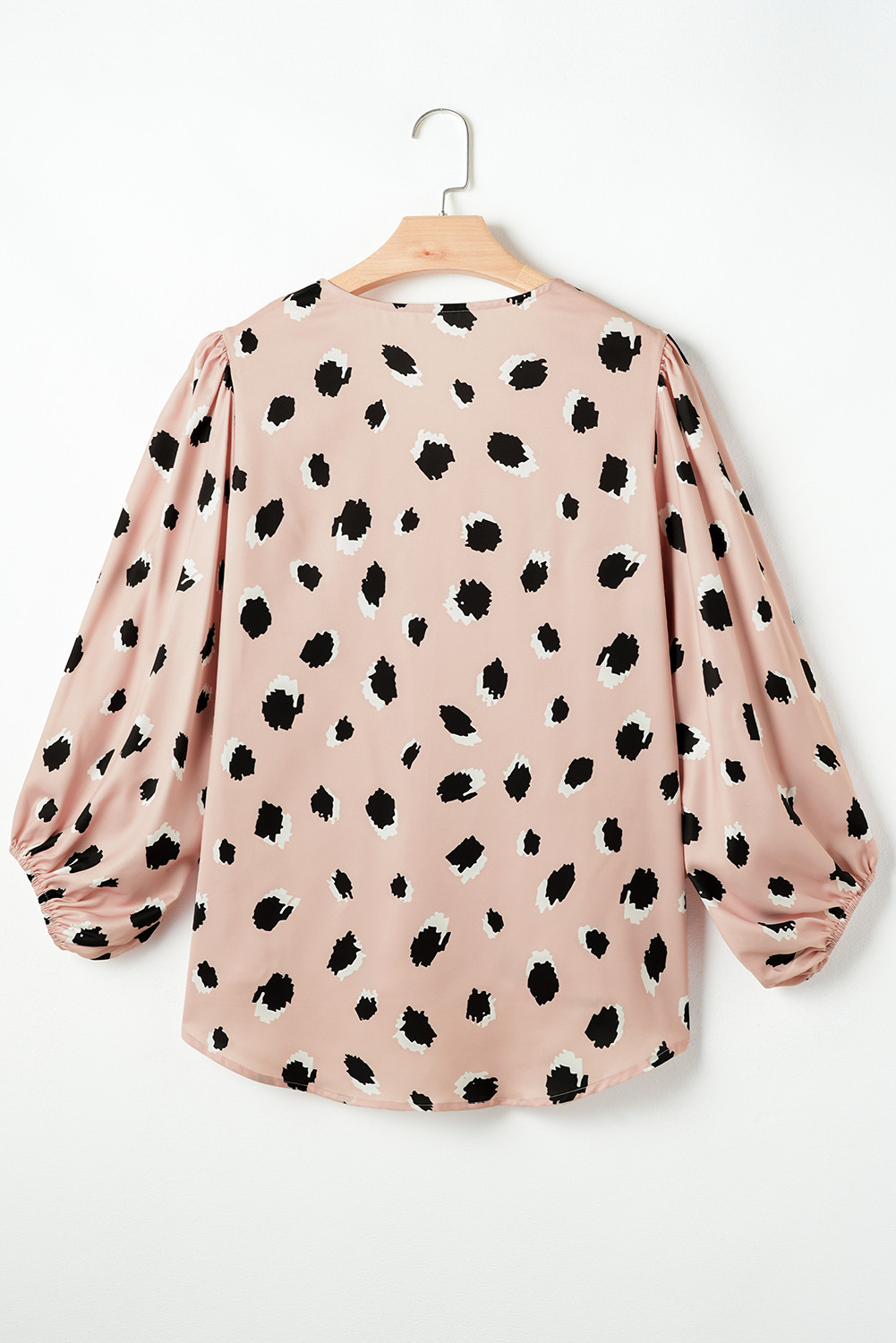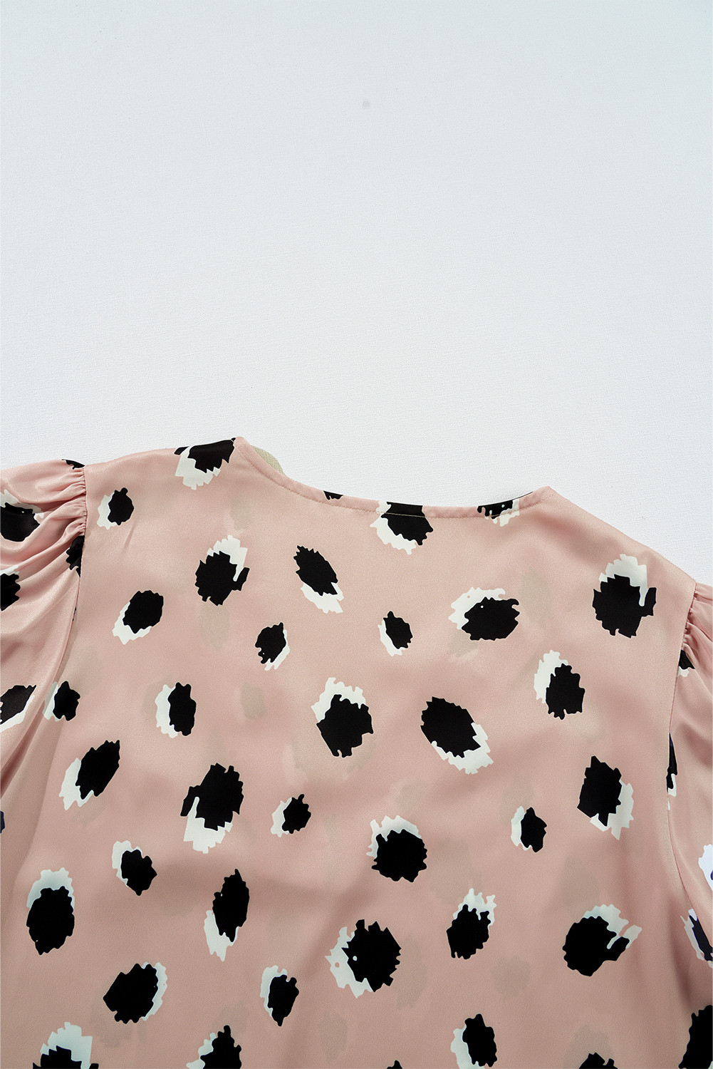 Chemisier classique kaki à manches bracelet et col en V léopard