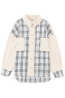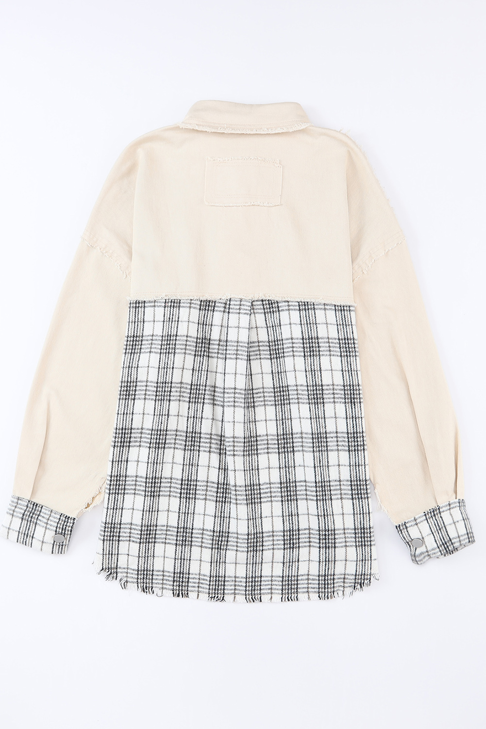 Veste en jean patchwork à carreaux à bords bruts d'aspect usé kaki