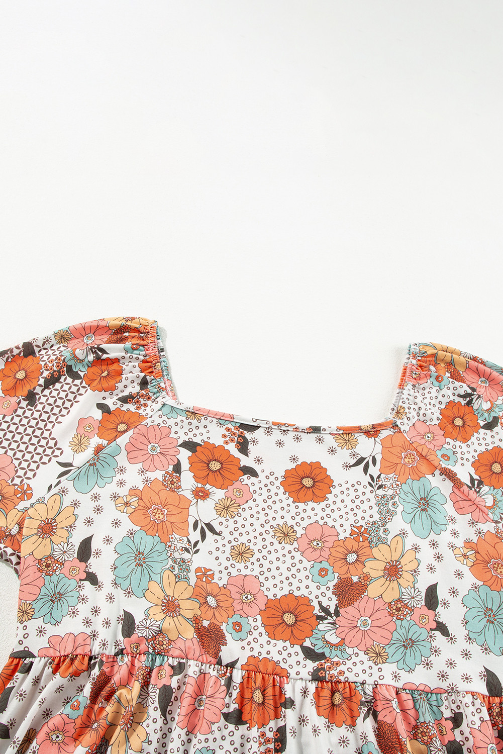 Kaki - Chemisier péplum à imprimé floral et col carré de grande taille