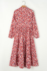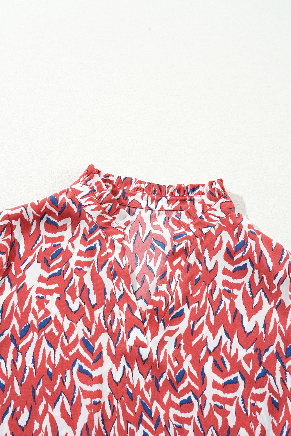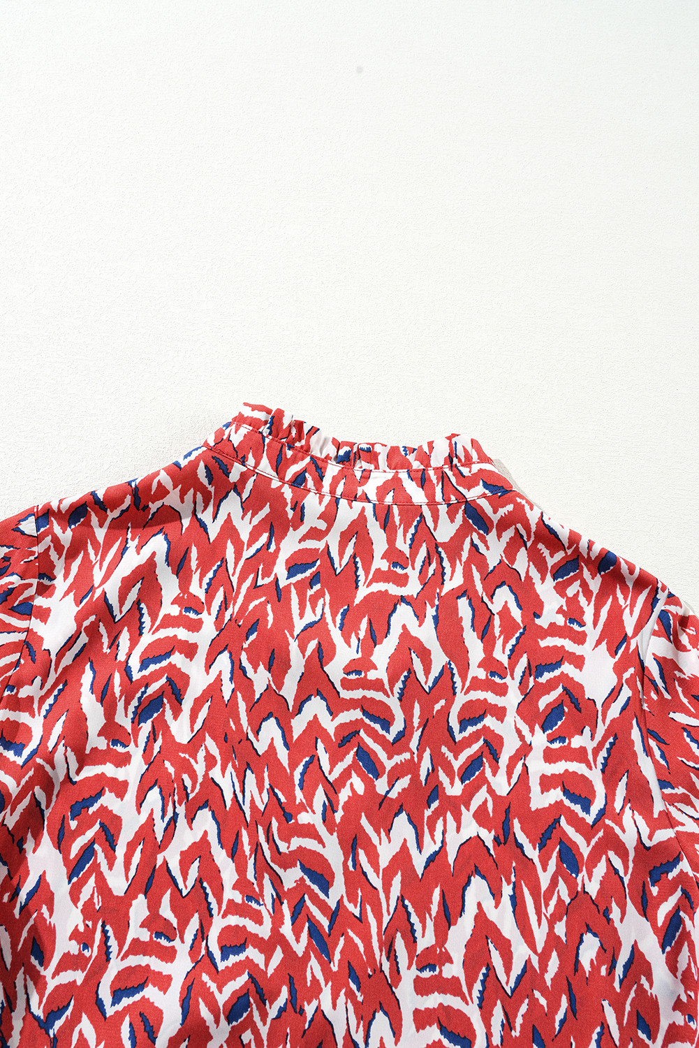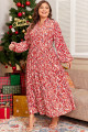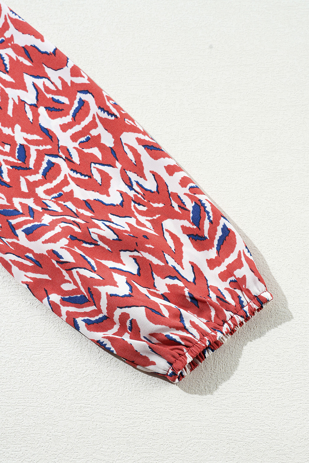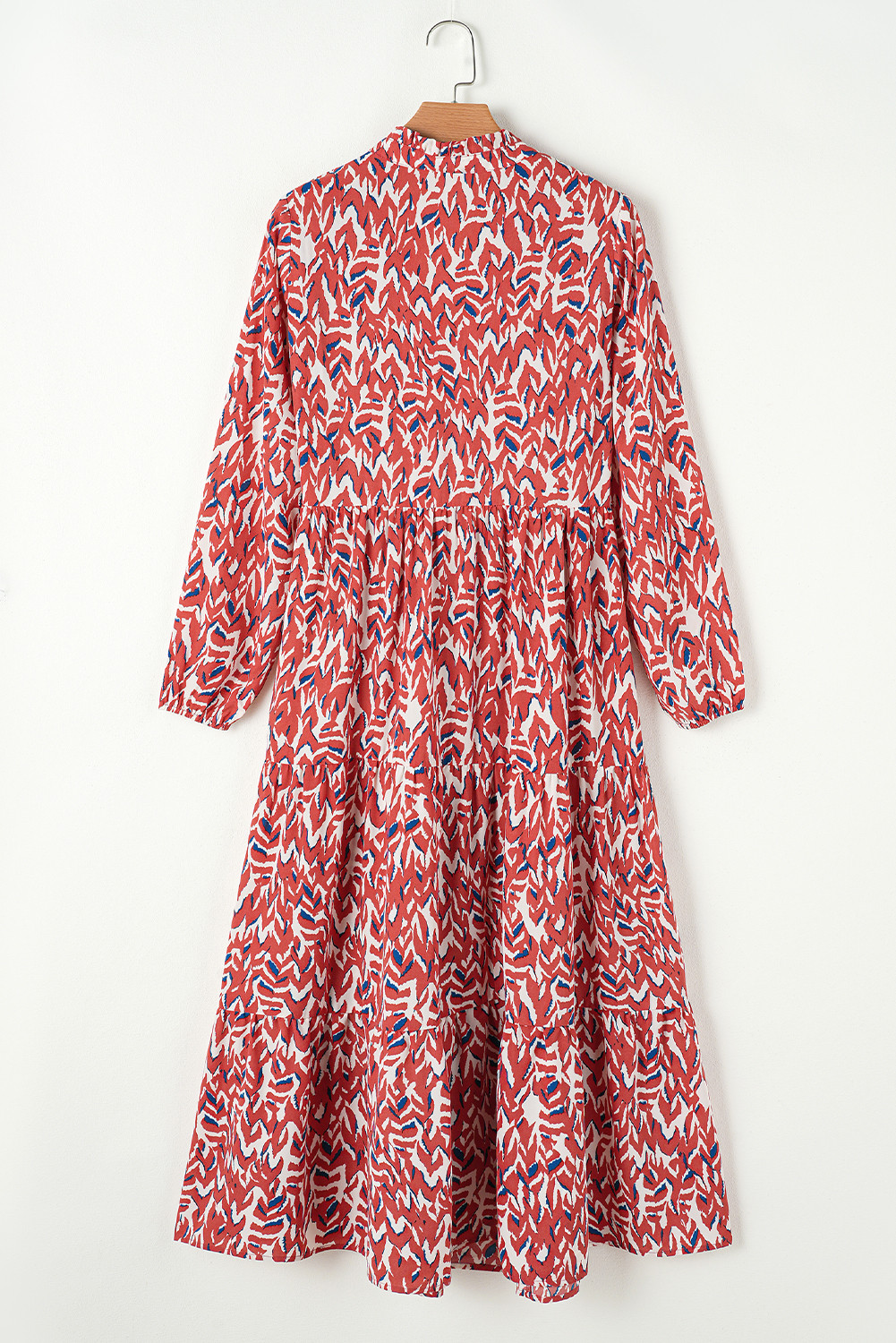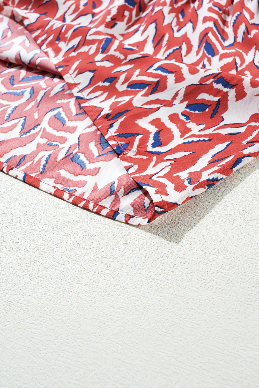 Robe mi-longue plissée taille haute à col en V et imprimé abstrait orange