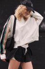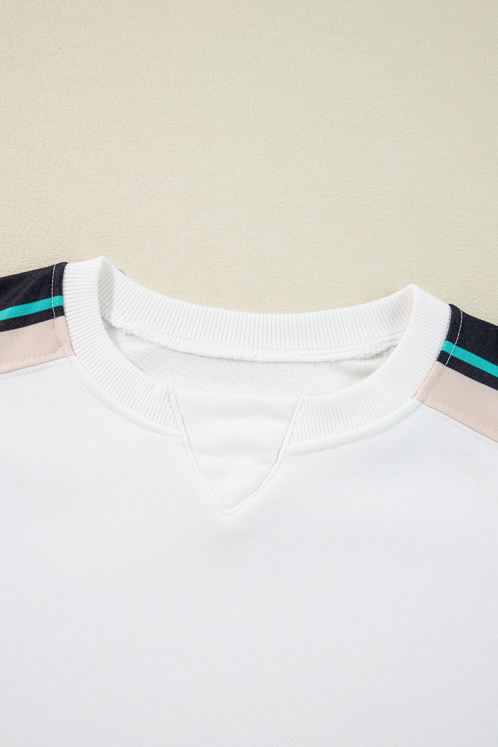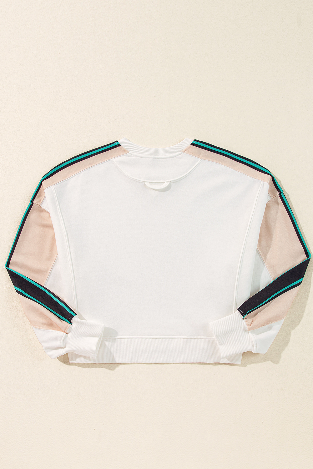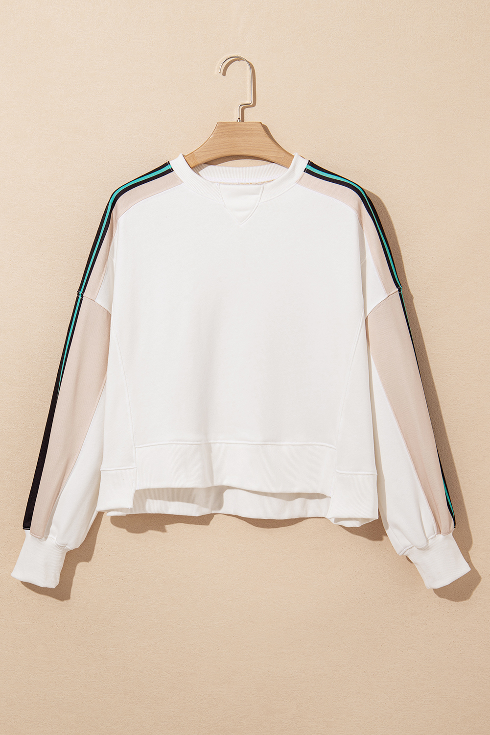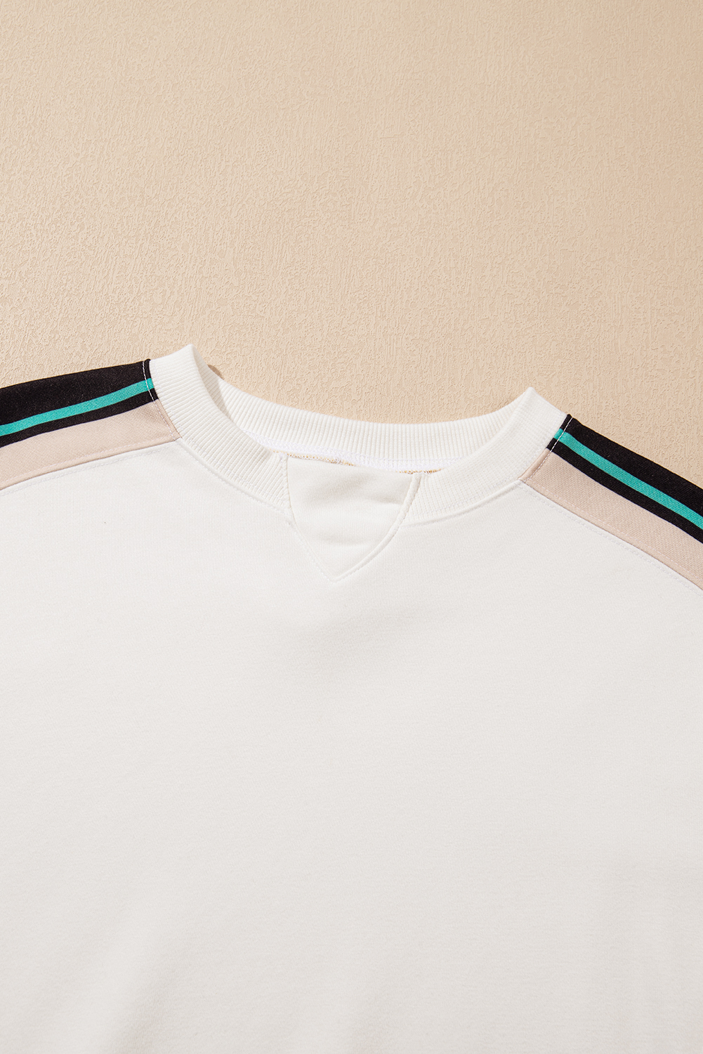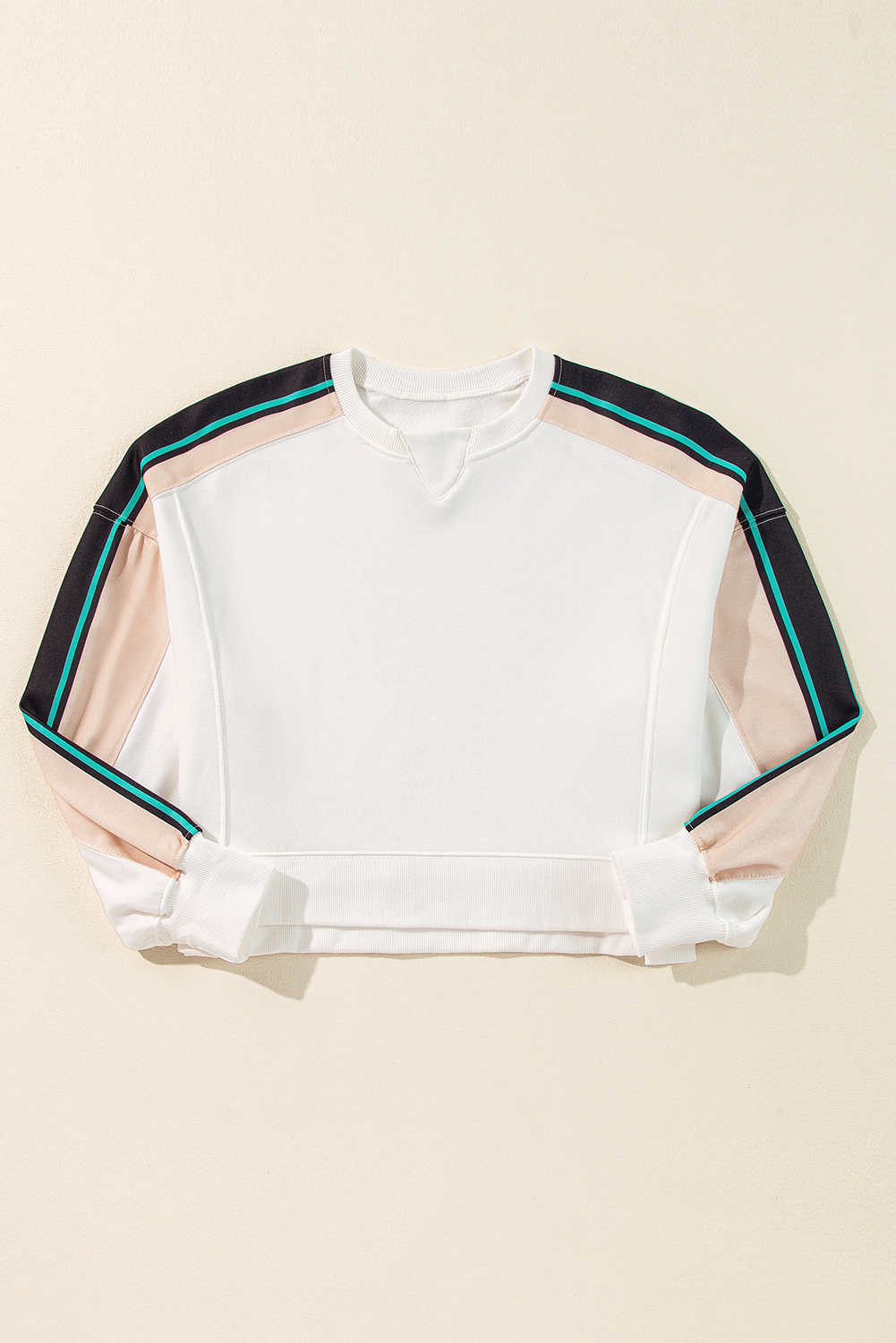 Dear Lover Sweat-shirt actif ample à rayures et blocs de couleurs à coutures apparentes blanc