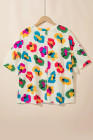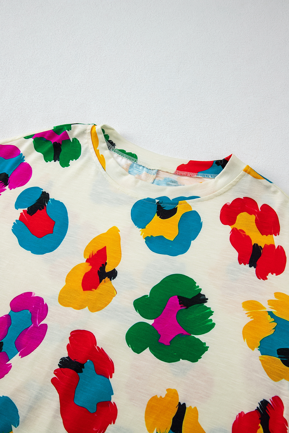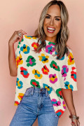 T-shirt oversize à épaules tombantes et imprimé léopard abricot