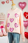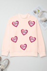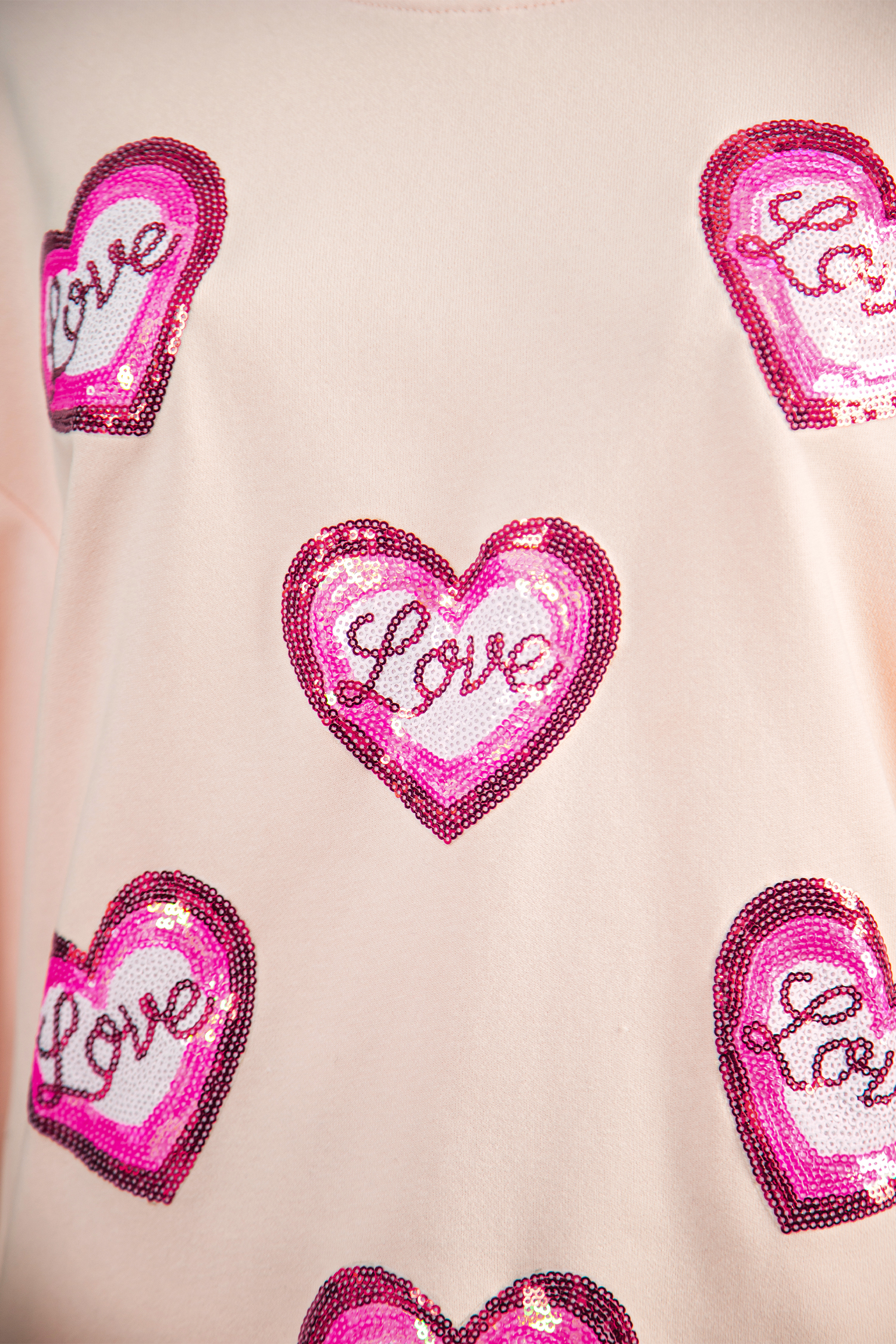 Sweat-shirt à col montant rose abricot à sequins et écusson en forme de cœur