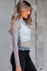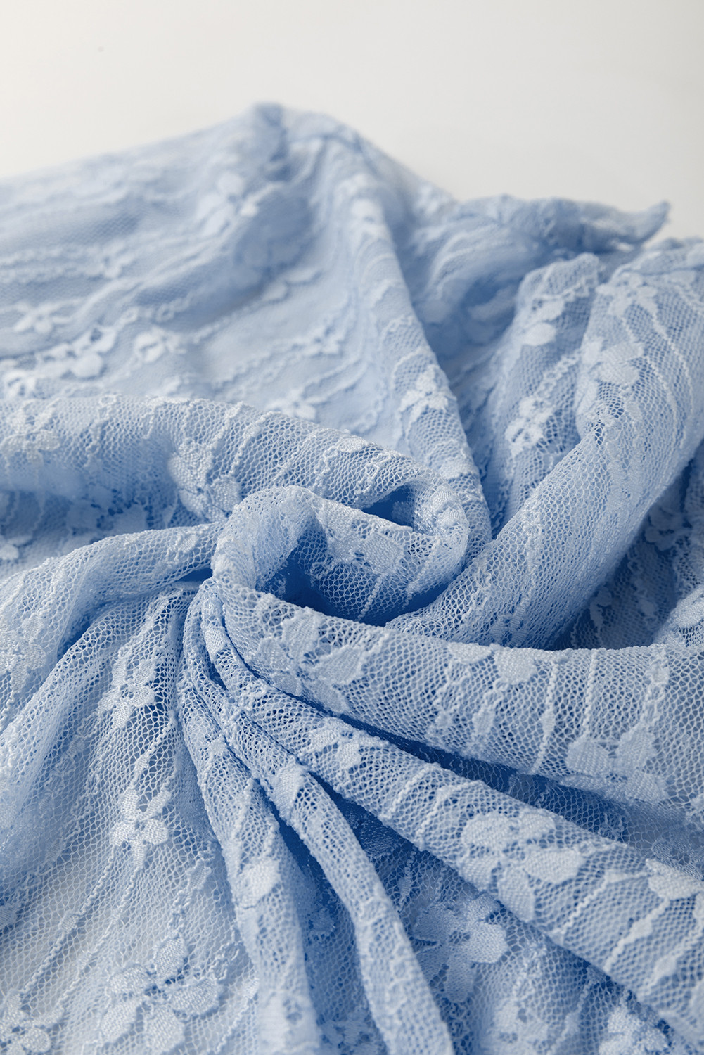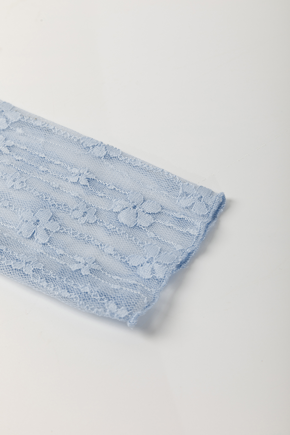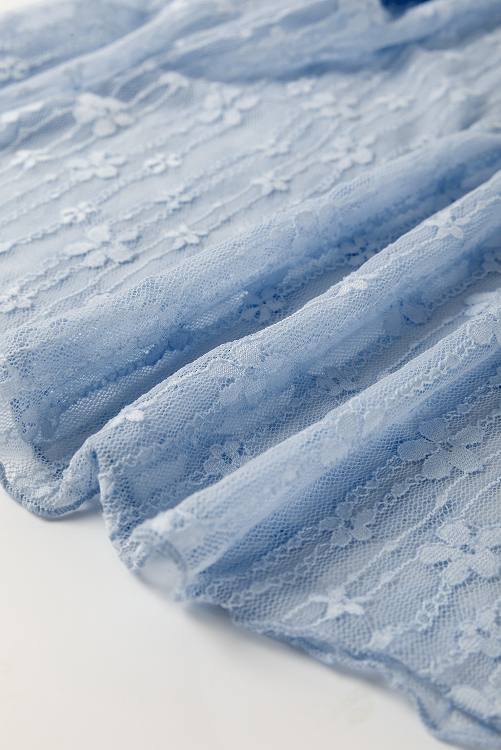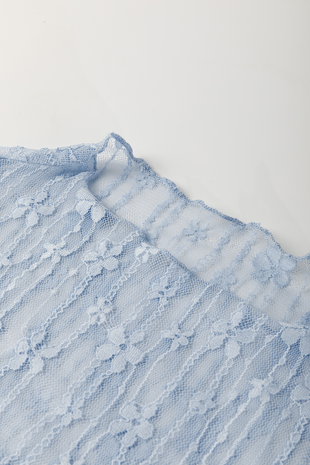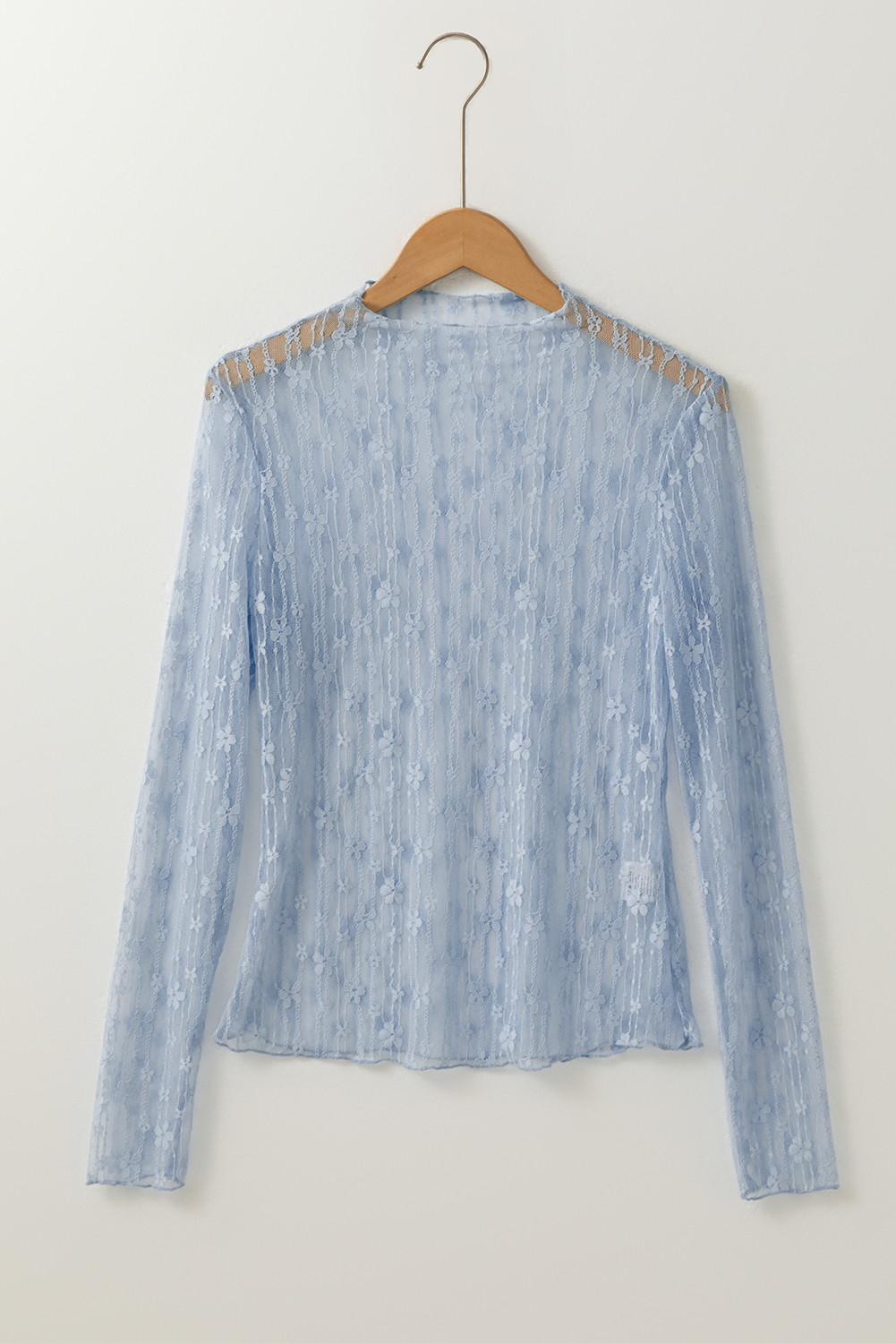 Haut slim à manches longues en dentelle florale transparente bleue Ashleigh