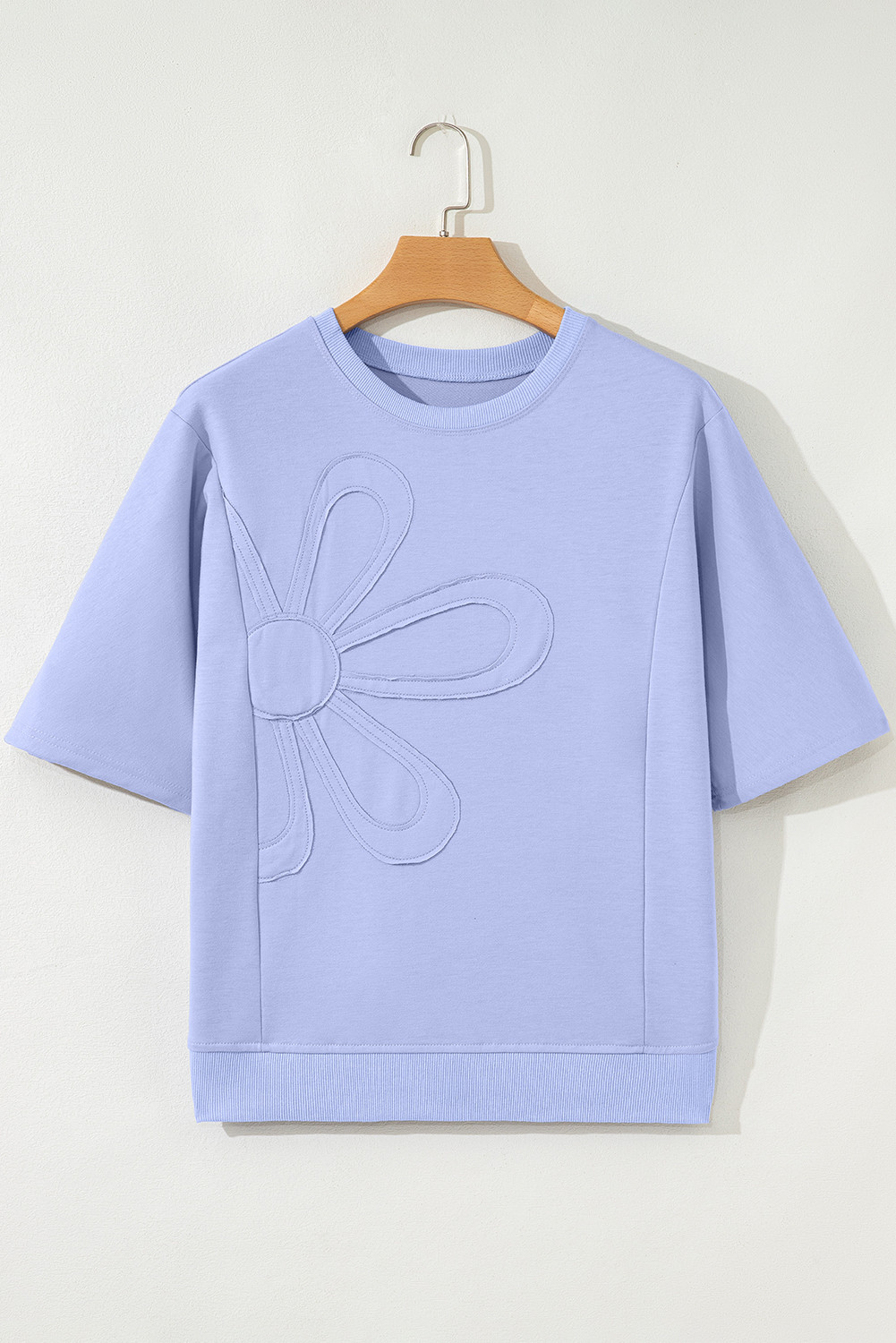 Haut tunique à manches mi-longues et patchs floraux bleu Beau