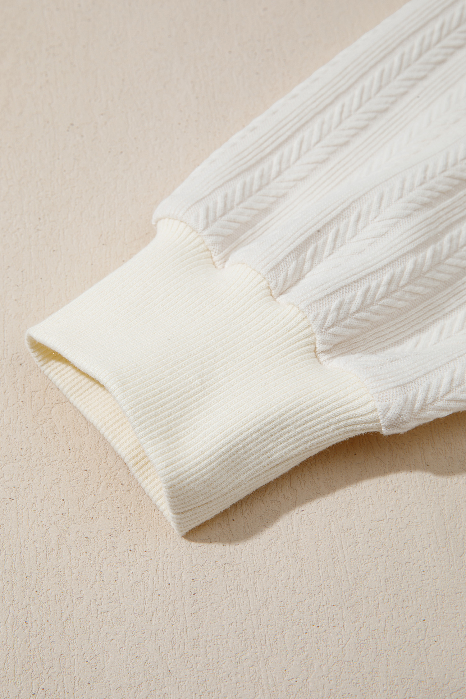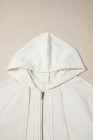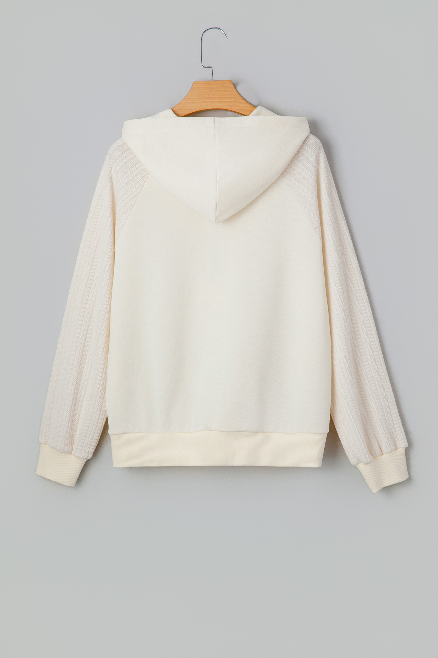Sweat à capuche beige uni texturé à manches patchwork et demi-zip