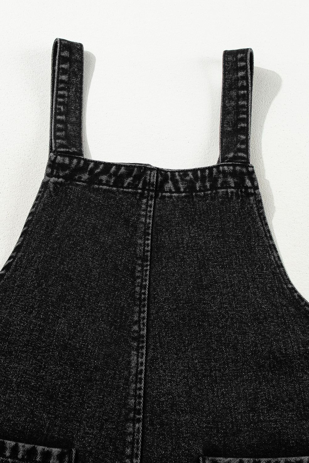 Salopette en jean noir à jambe large avec poches à plastron et effet vieilli