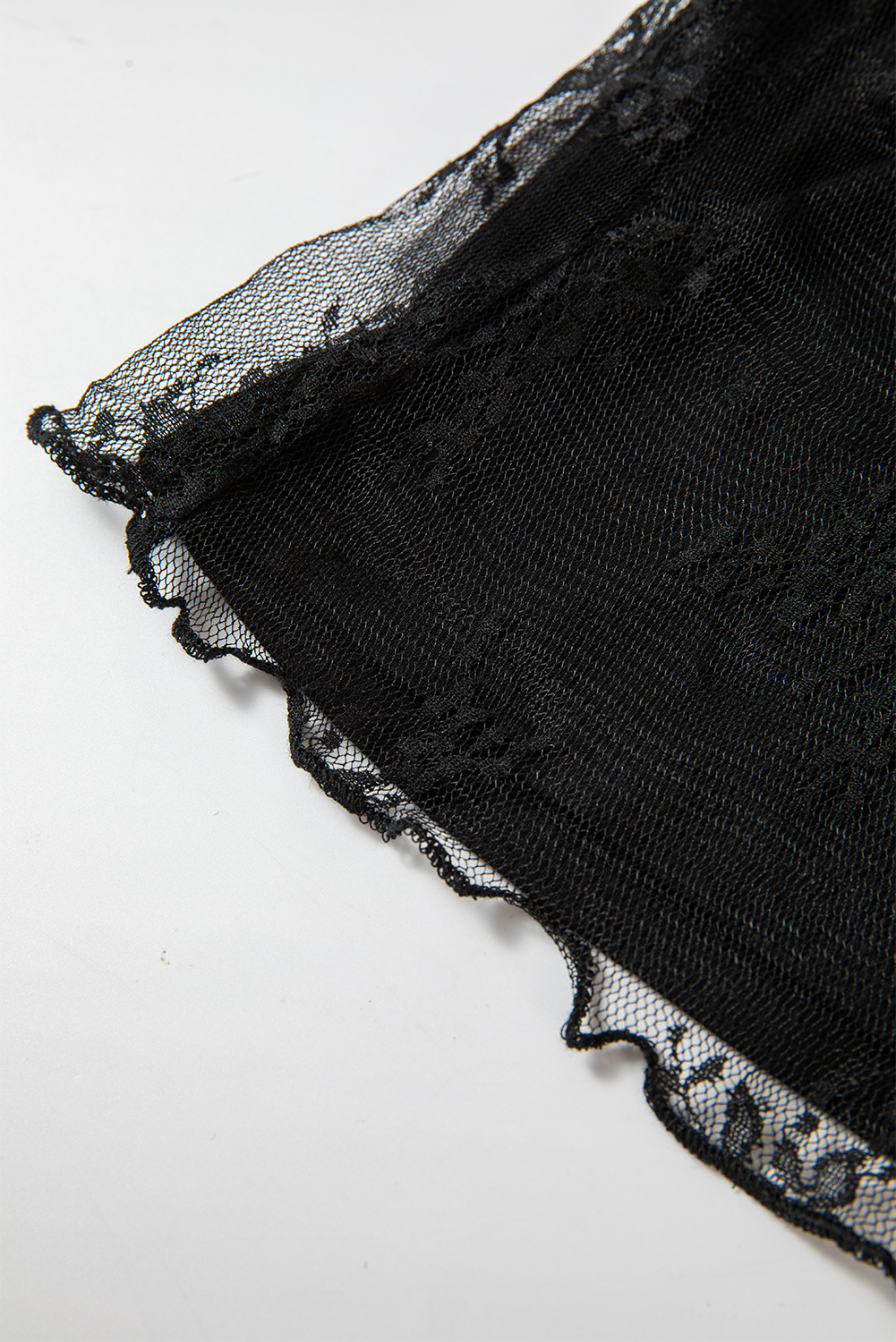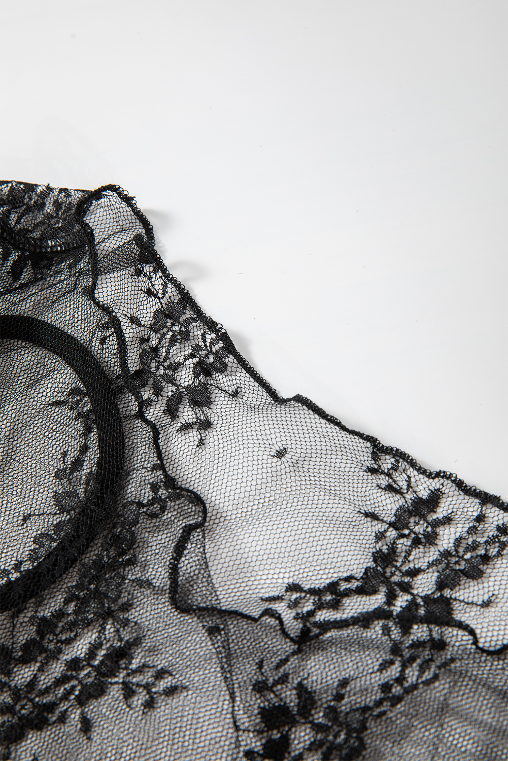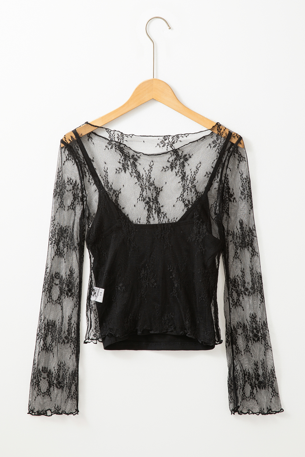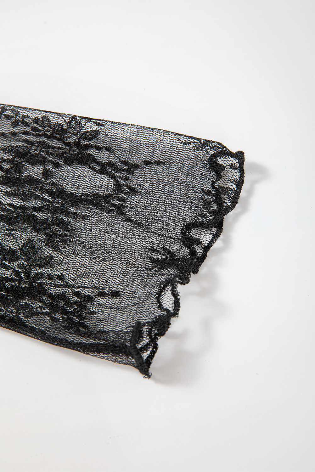 Chemisier noir à manches longues et en maille de dentelle avec épissure au crochet