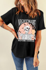 T-shirt d'Halloween graphique en damier noir de Cauchemar avant le café