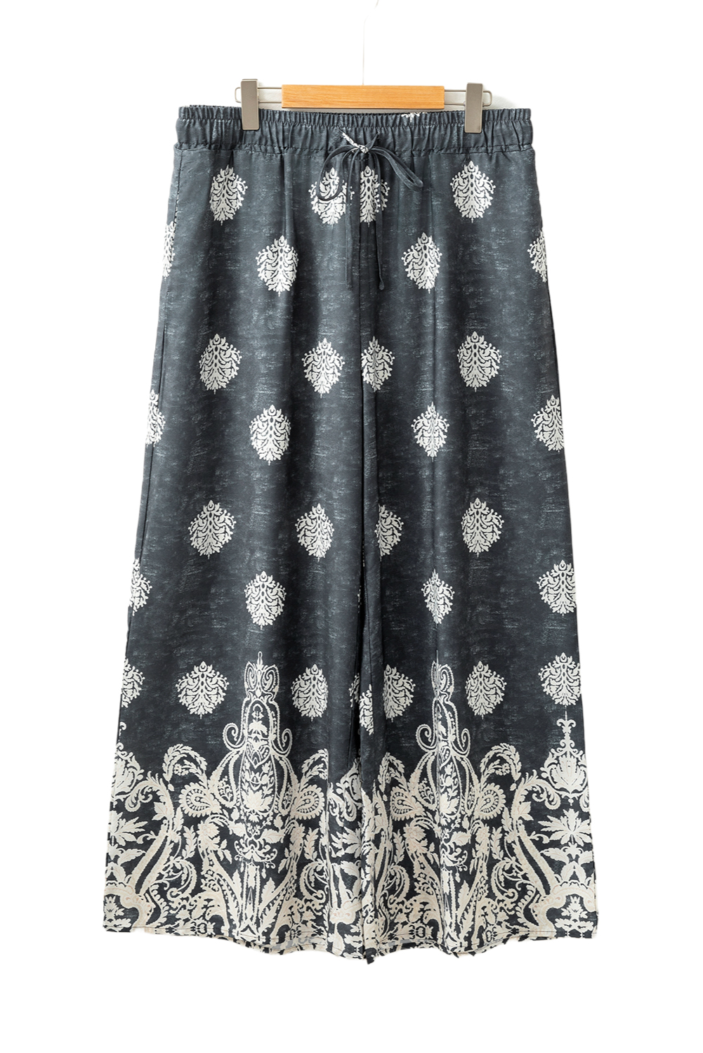 Pantalon large noir à imprimé ethnique géométrique et cordon de serrage, grande taille