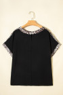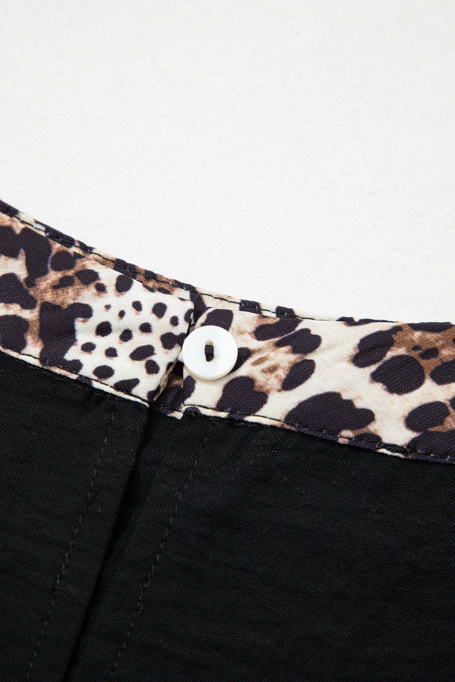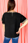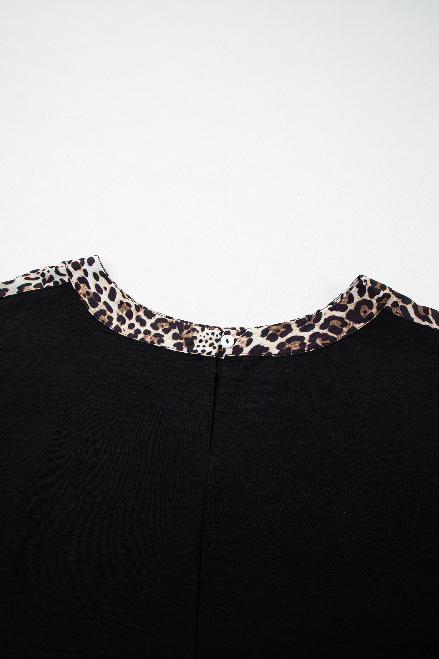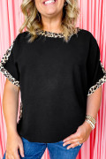 T-shirt ample à col rond et patchwork léopard noir grande taille