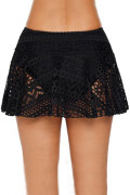 Bas de bikini à jupe en dentelle crochetée noire unie