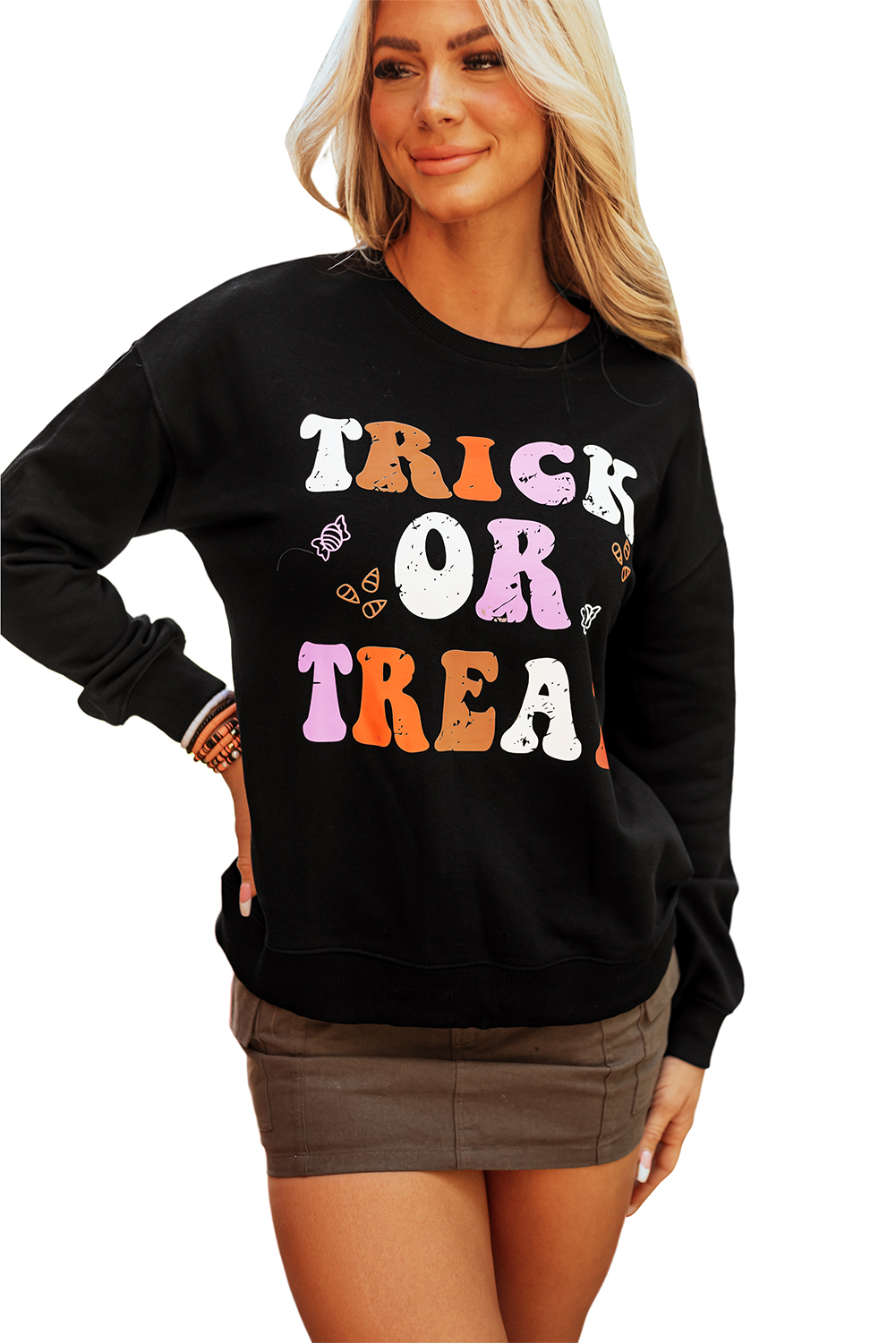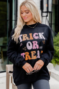 Sweat-shirt d'Halloween noir à col rond et graphique TRICK OR TREAT