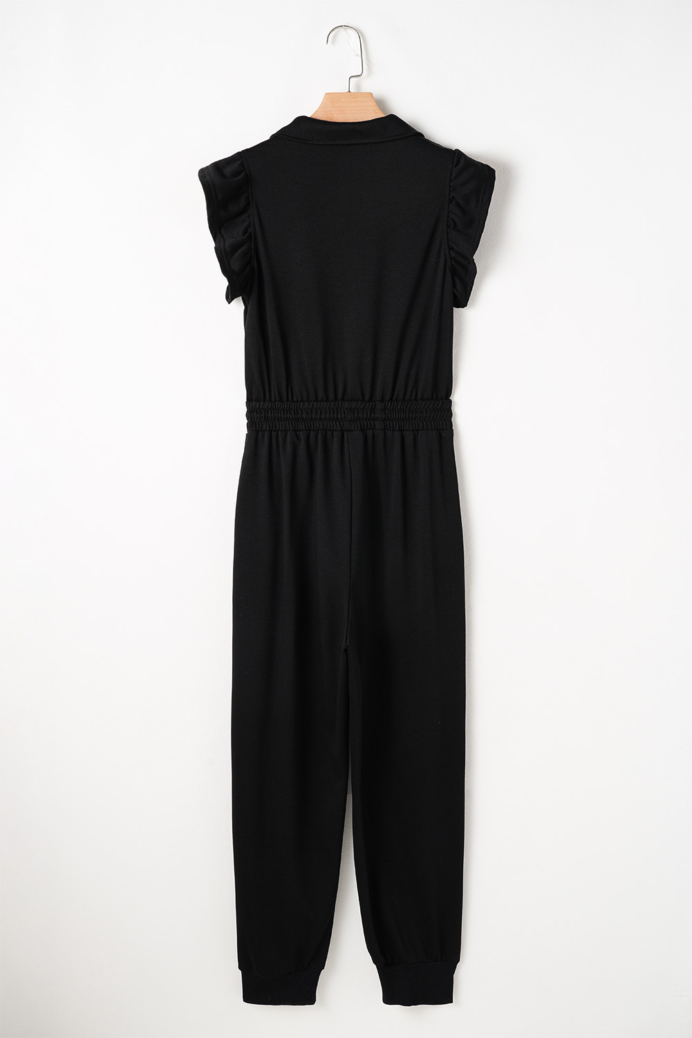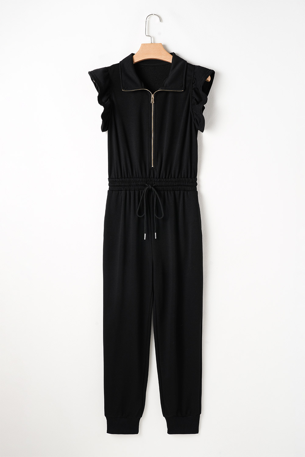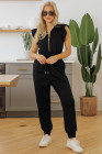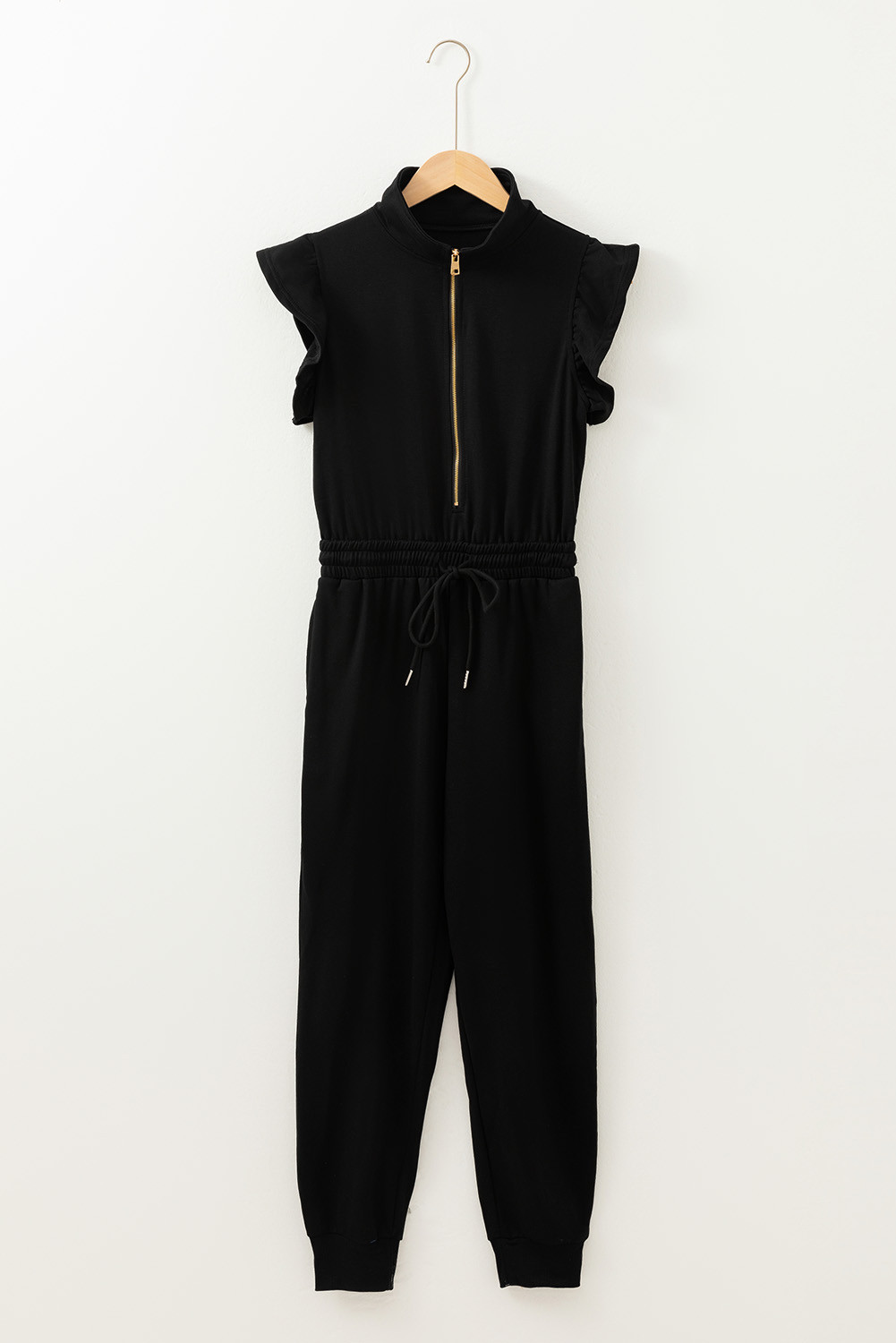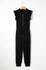 Combinaison noire à fermeture éclair, manches flottantes, cordon de serrage, taille élastique