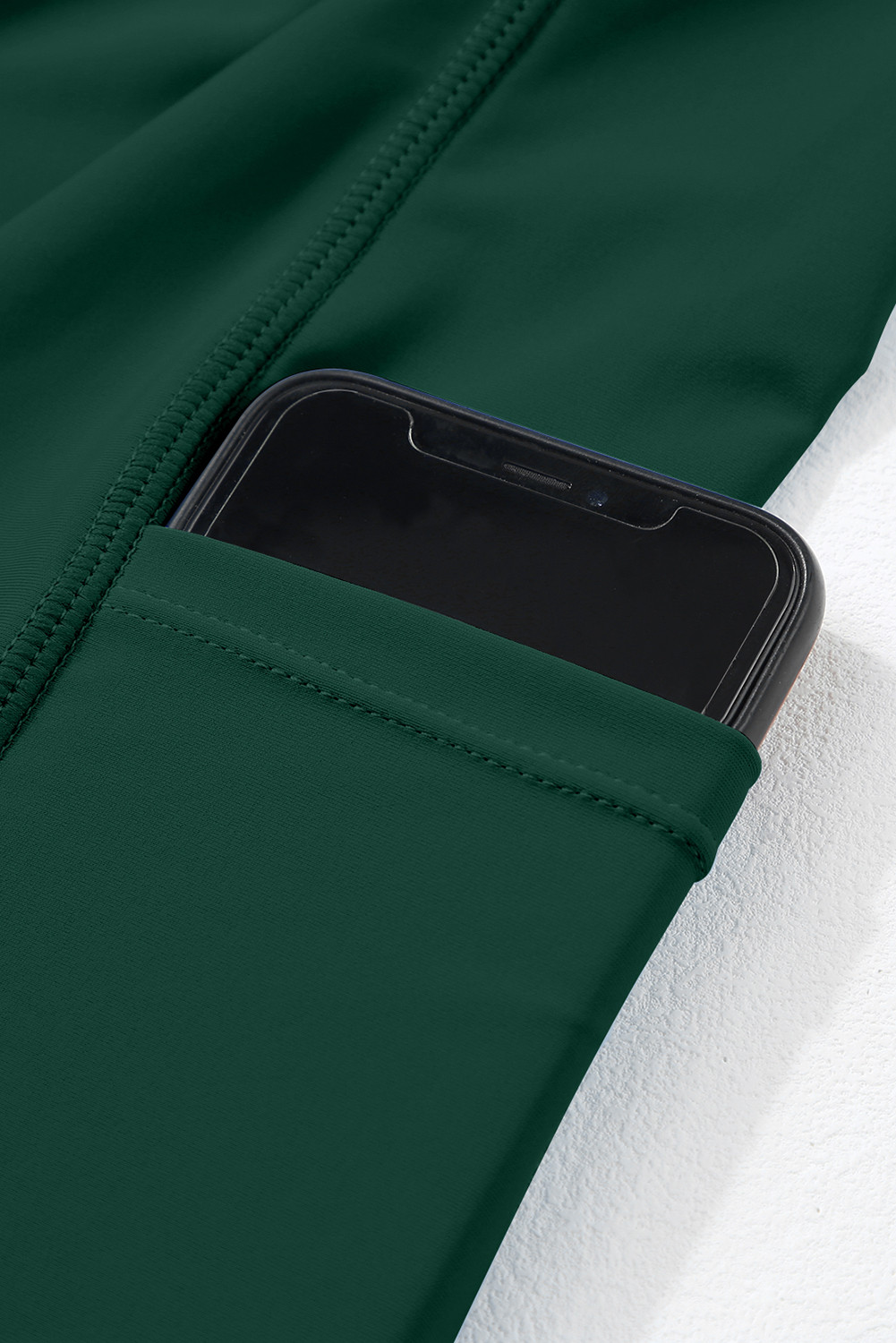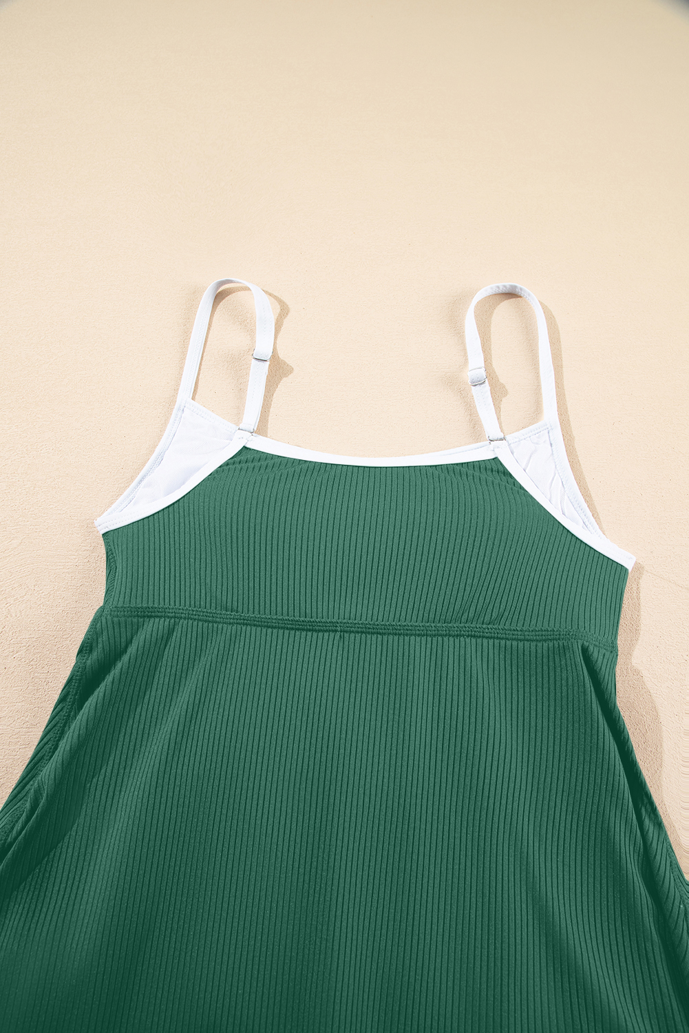 Robe de bain doublée à poches côtelées, bordée de blocs de couleur vert foncé