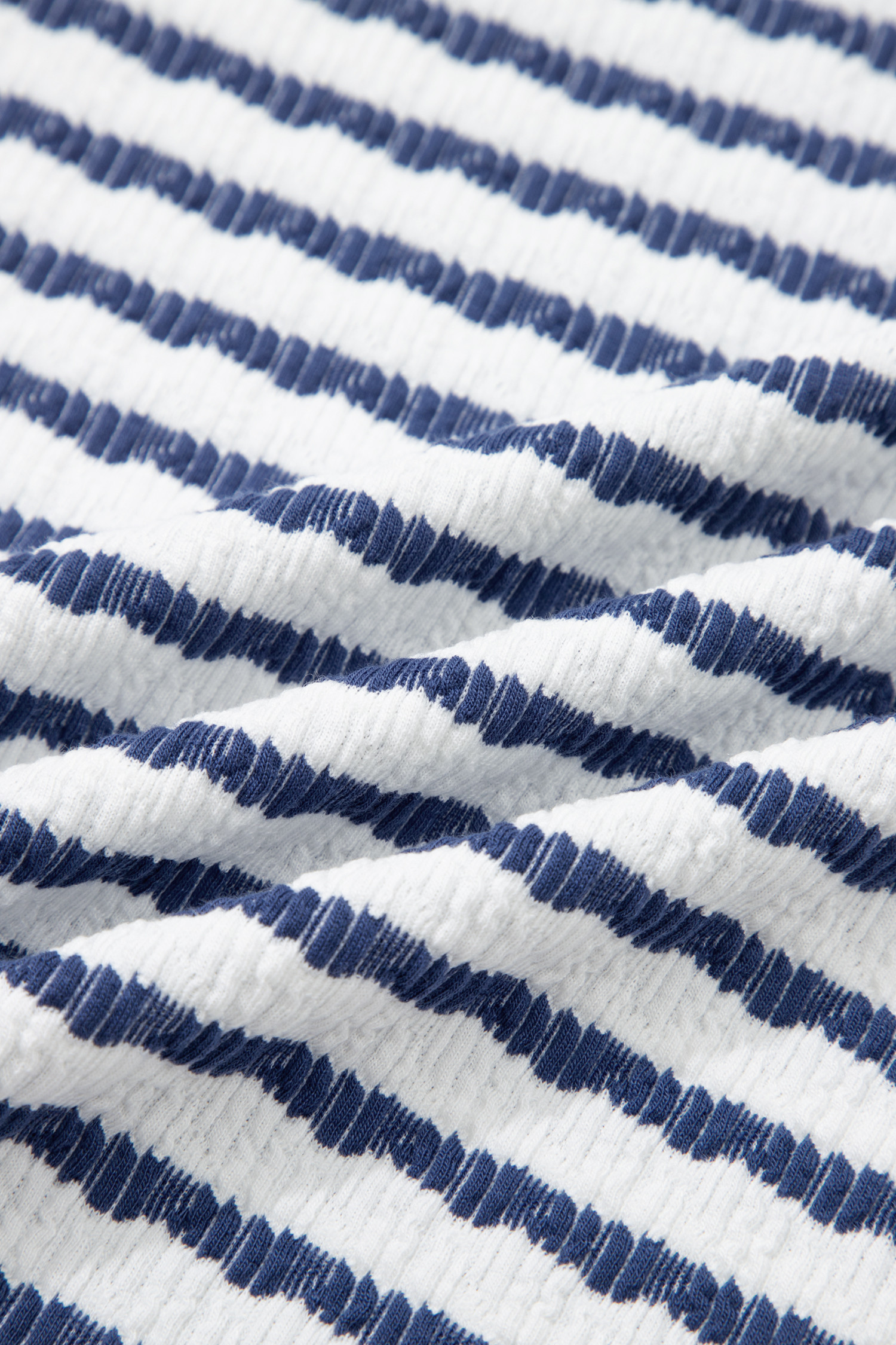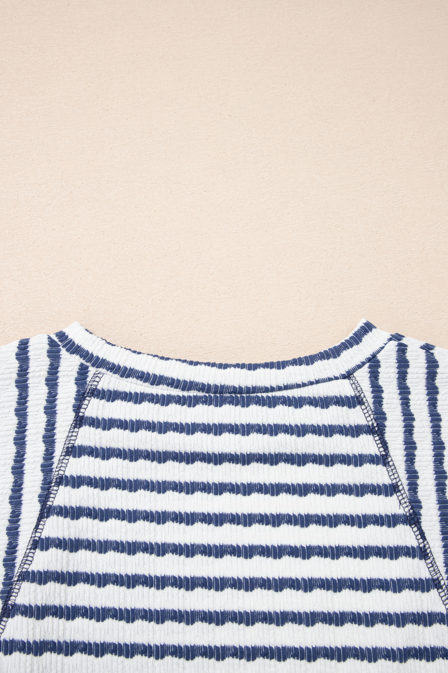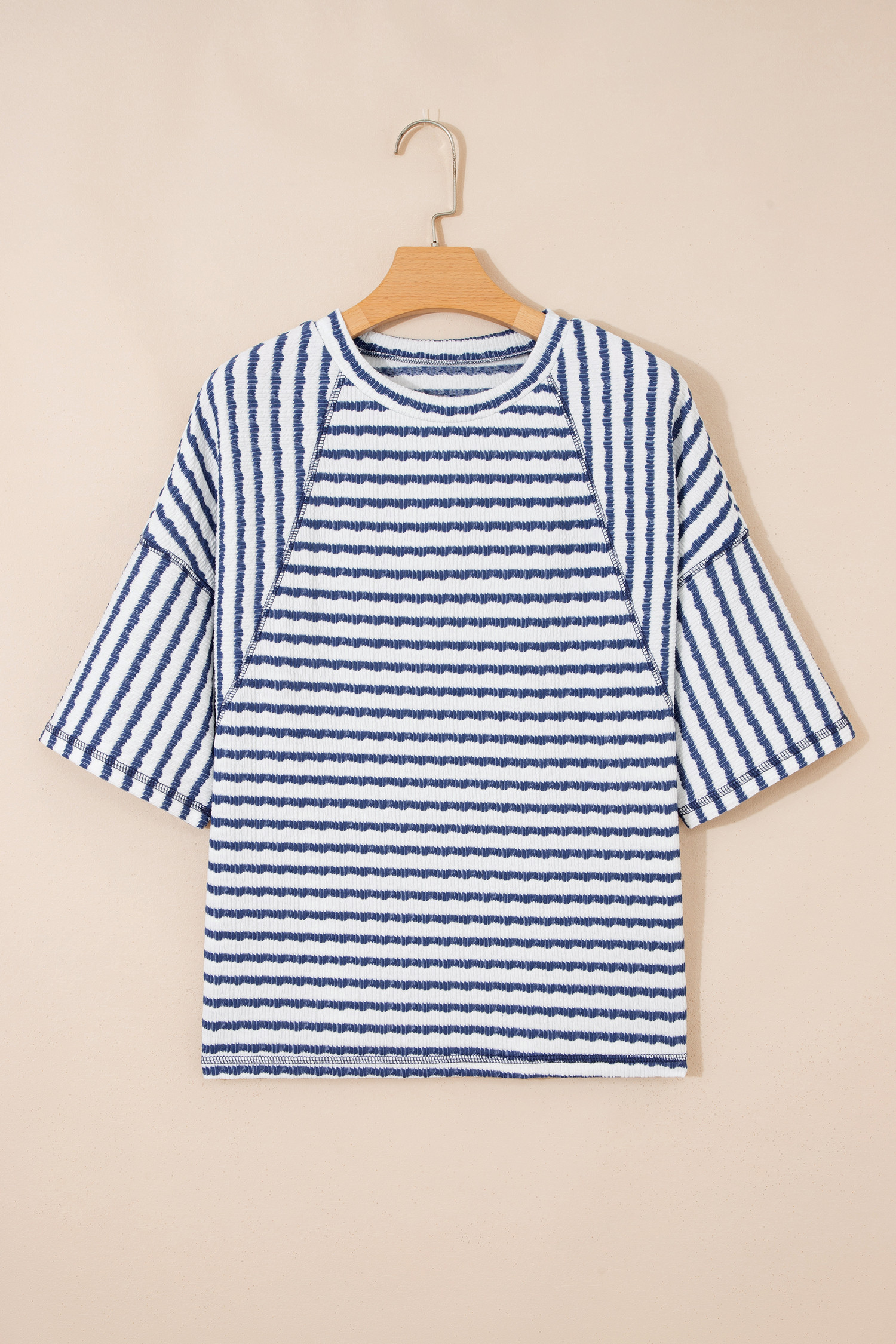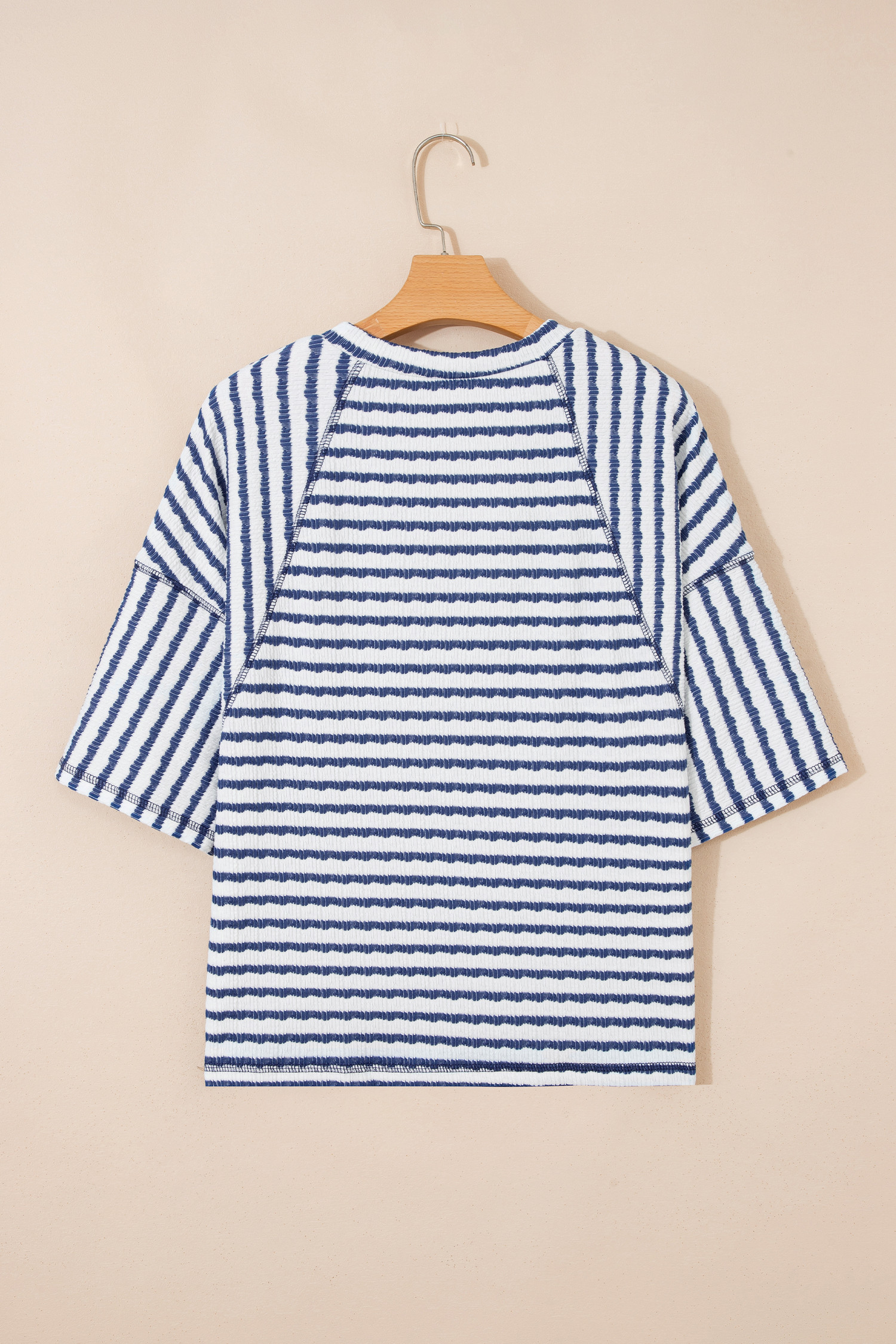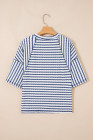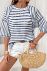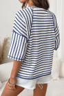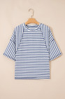 Haut ample à rayures bleues en maille texturée et ourlet fendu, manches courtes