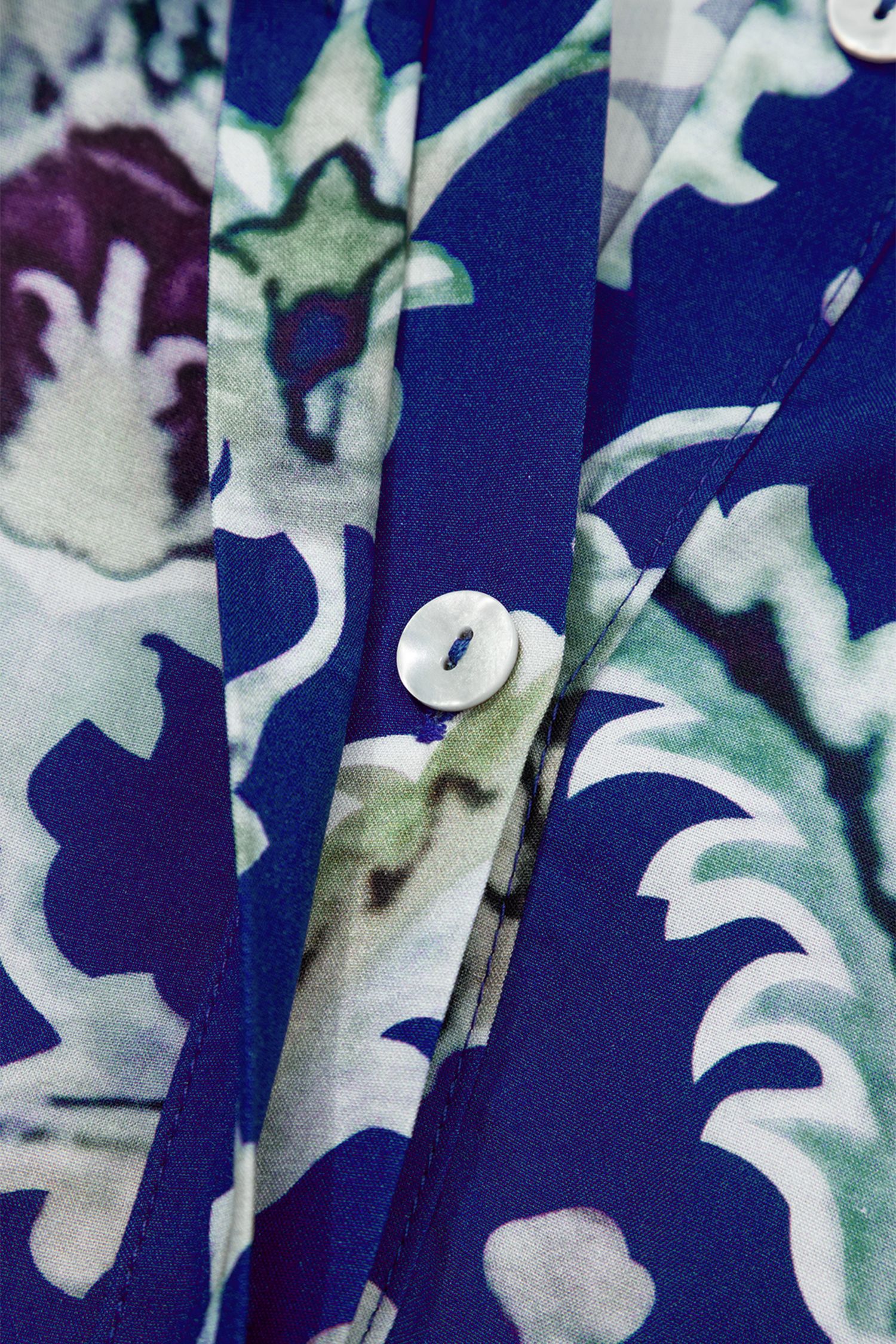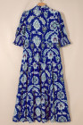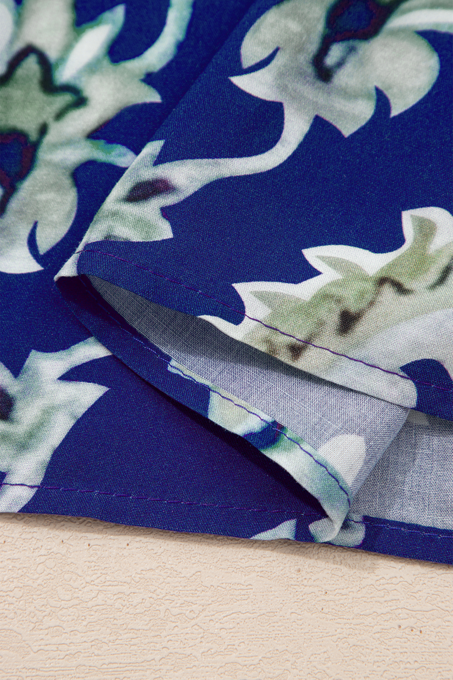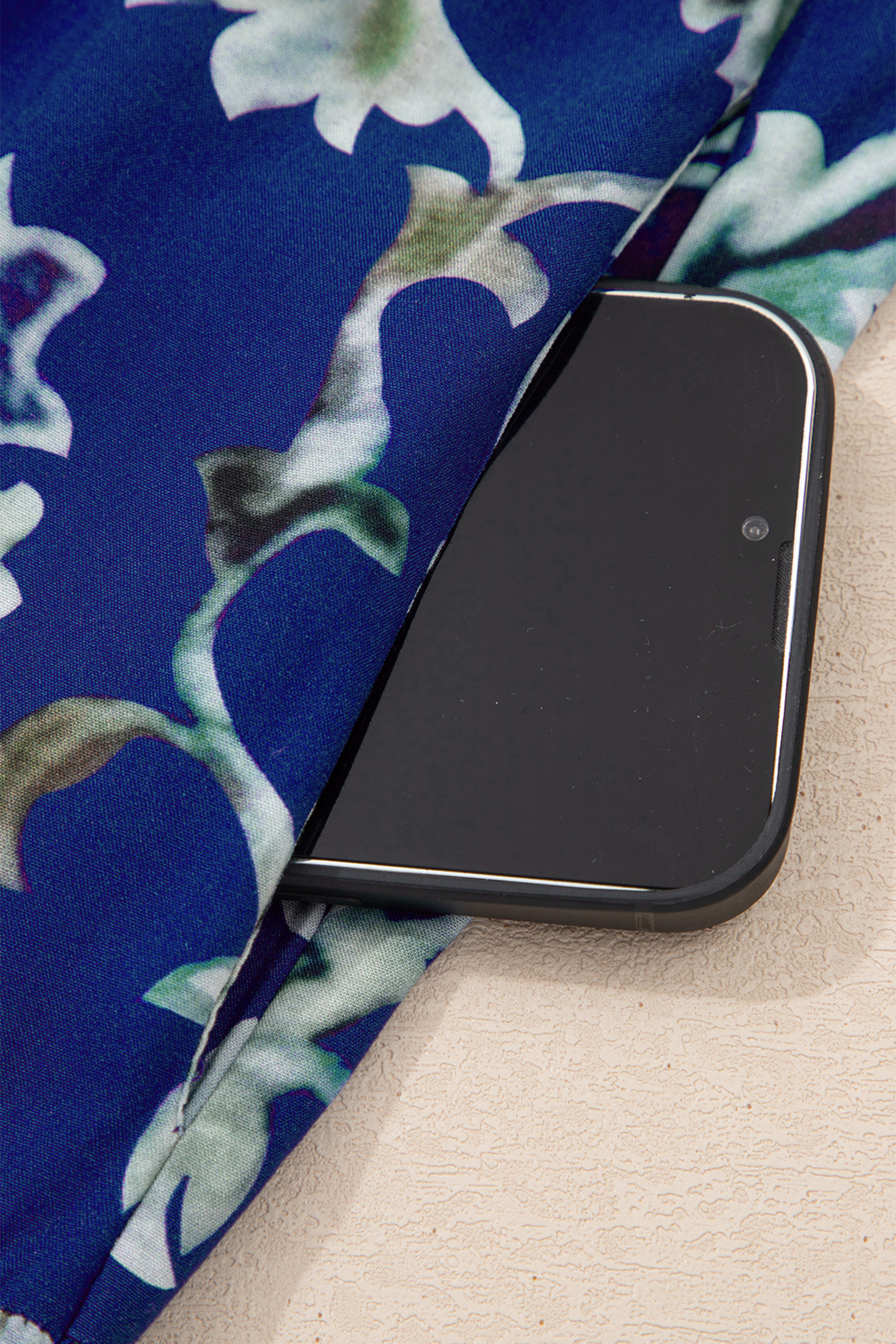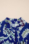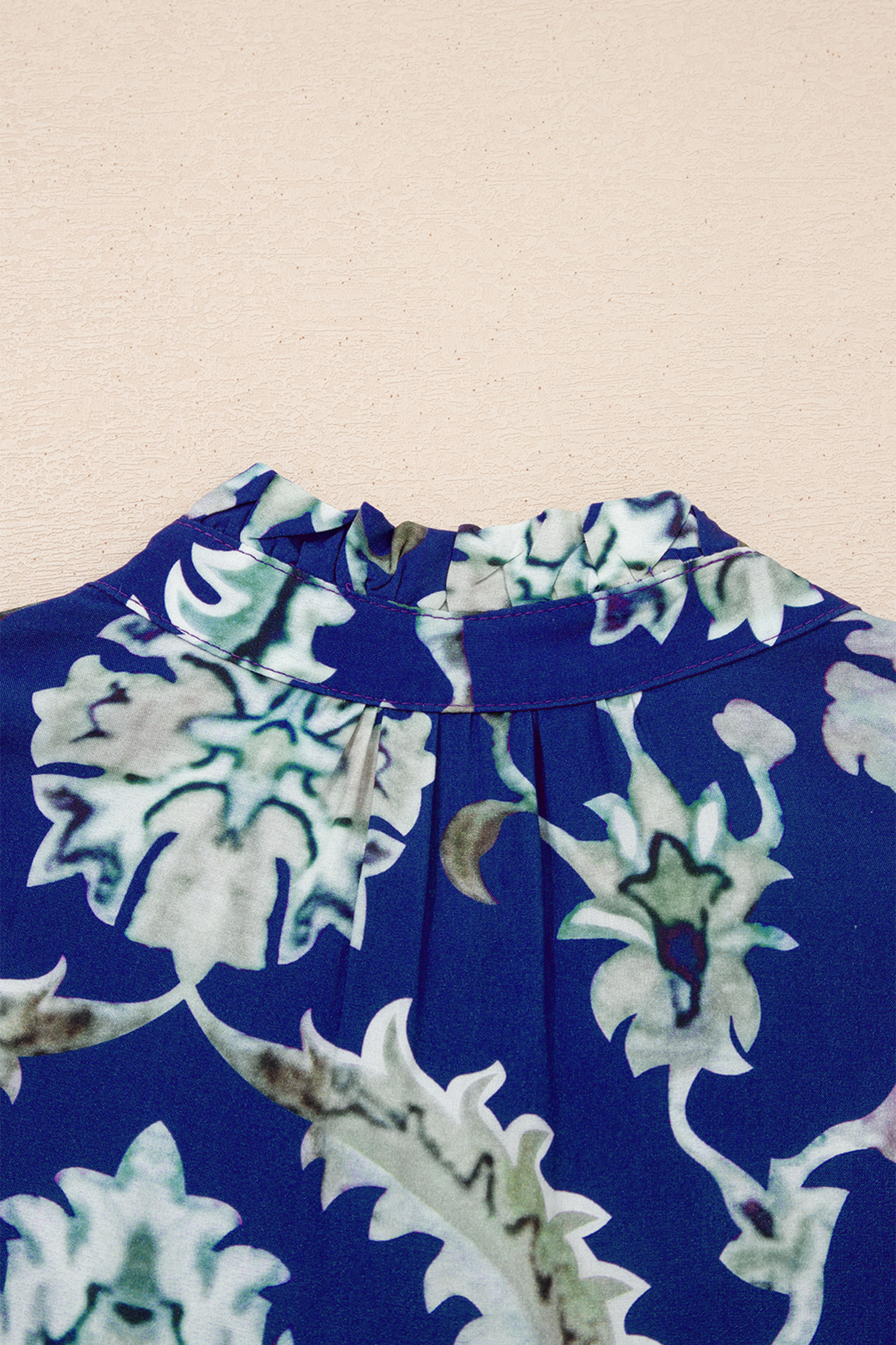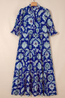 Robe longue à manches courtes et col volanté, imprimé floral sauvage bleu