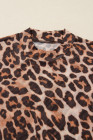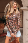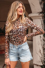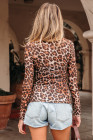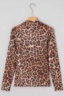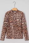 Haut en maille à manches longues et col montant motif léopard marron