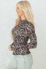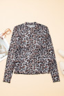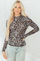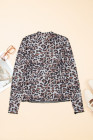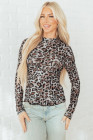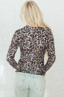 Haut à manches longues en maille à col montant et motif léopard marron