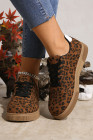 Chaussures à lacets patchwork à imprimé léopard café et languette contrastée au talon