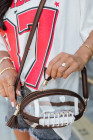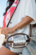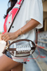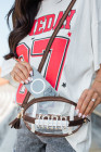 Sac bandoulière transparent en PVC avec bordure contrastée et franges, motif rugby et café