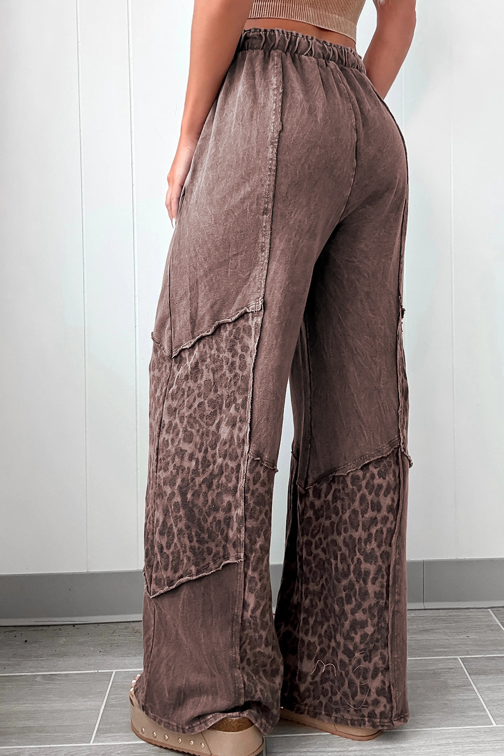 Pantalon ample patchwork léopard délavé minéral café
