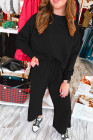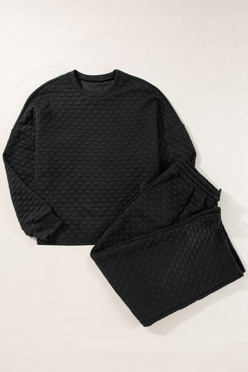 Ensemble haut et pantalon fendu texturé à carreaux de couleur noir