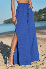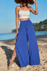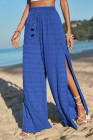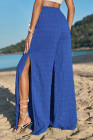 Pantalon uni bleu foncé texturé à jambes larges fendues