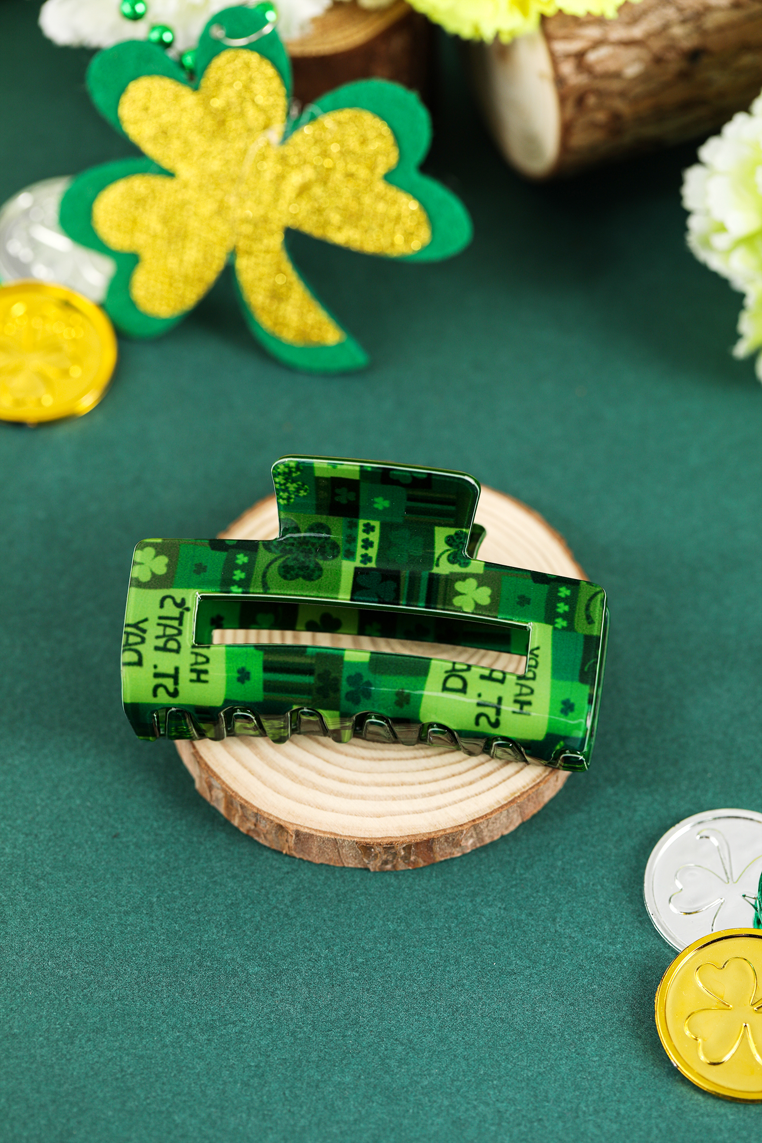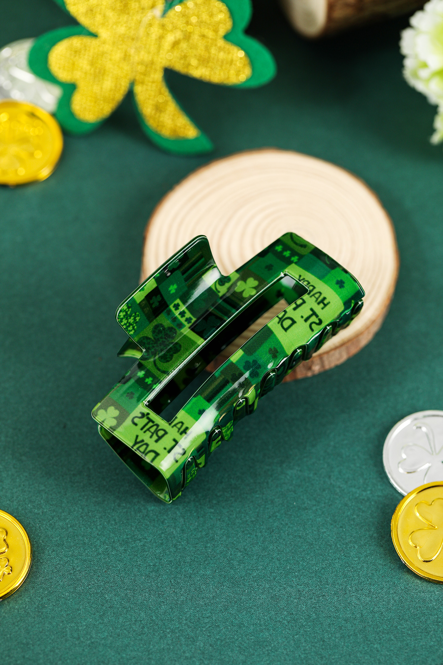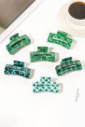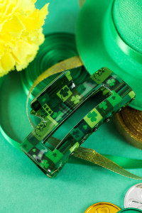 Pince à cheveux carrée vert foncé à motif trèfle pour la Saint-Patrick