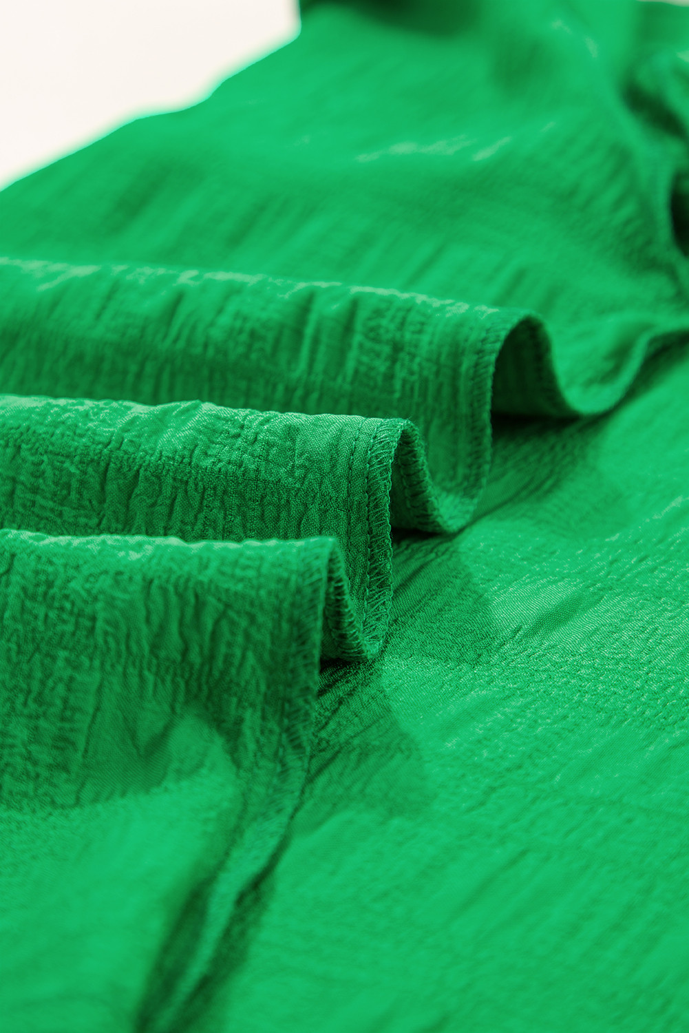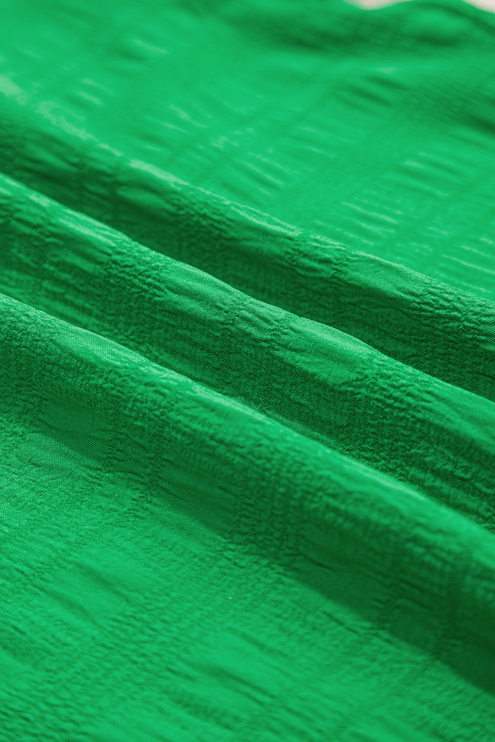 Haut à col rond texturé vert foncé avec manches à volants