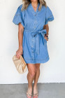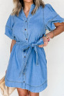 Robe en jean à manches bouffantes courtes avec ceinture