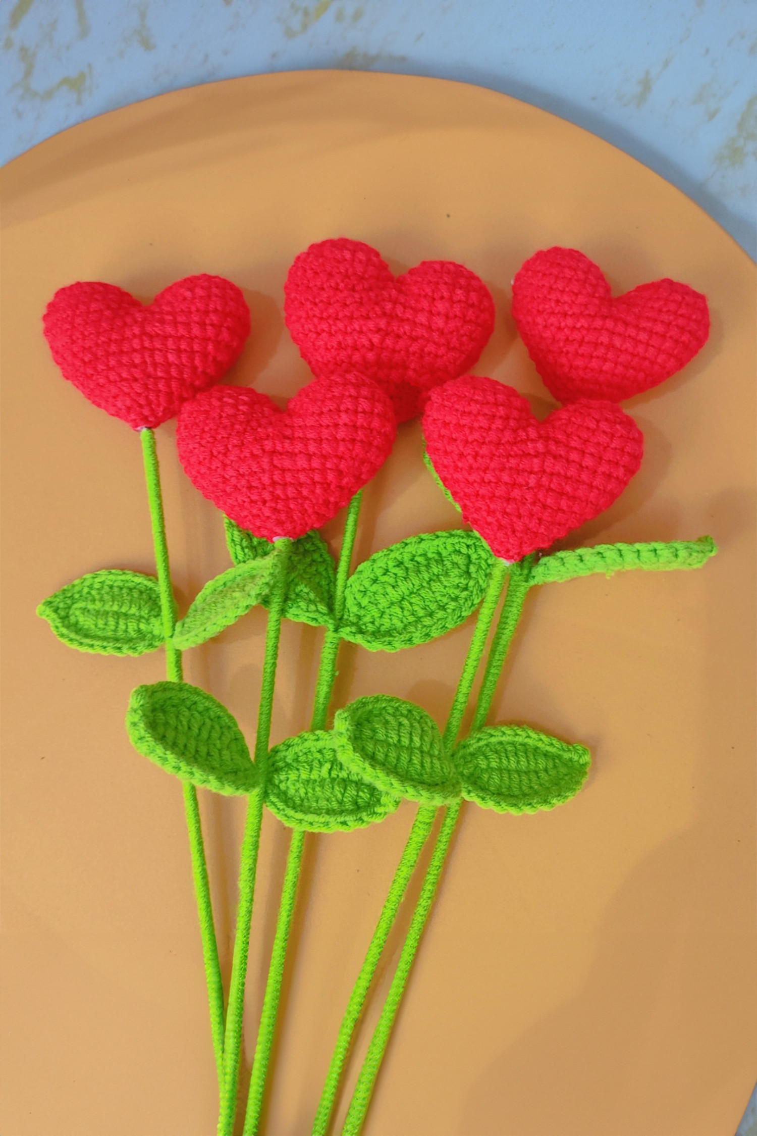 Fleur en forme de cœur au crochet, rouge flamboyant, pièce unique
