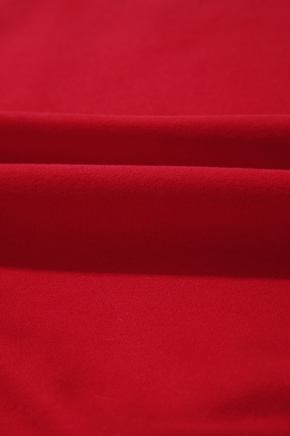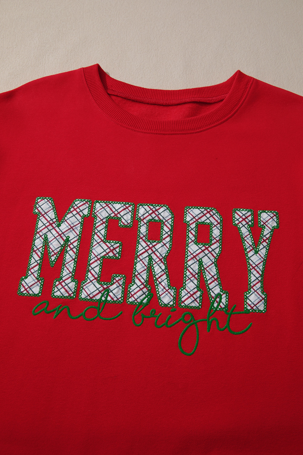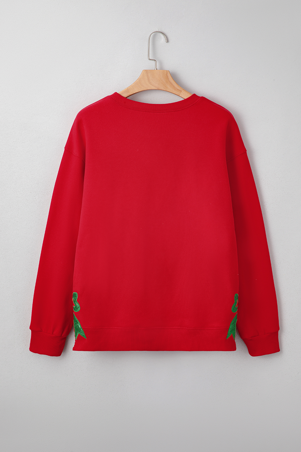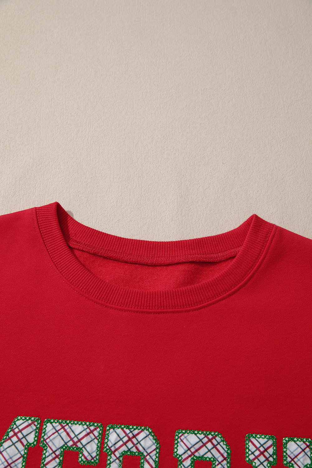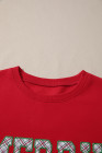 Sweat-shirt de Noël rouge vif à carreaux brodés, lettres graphiques à paillettes et nœud décoratif