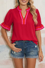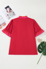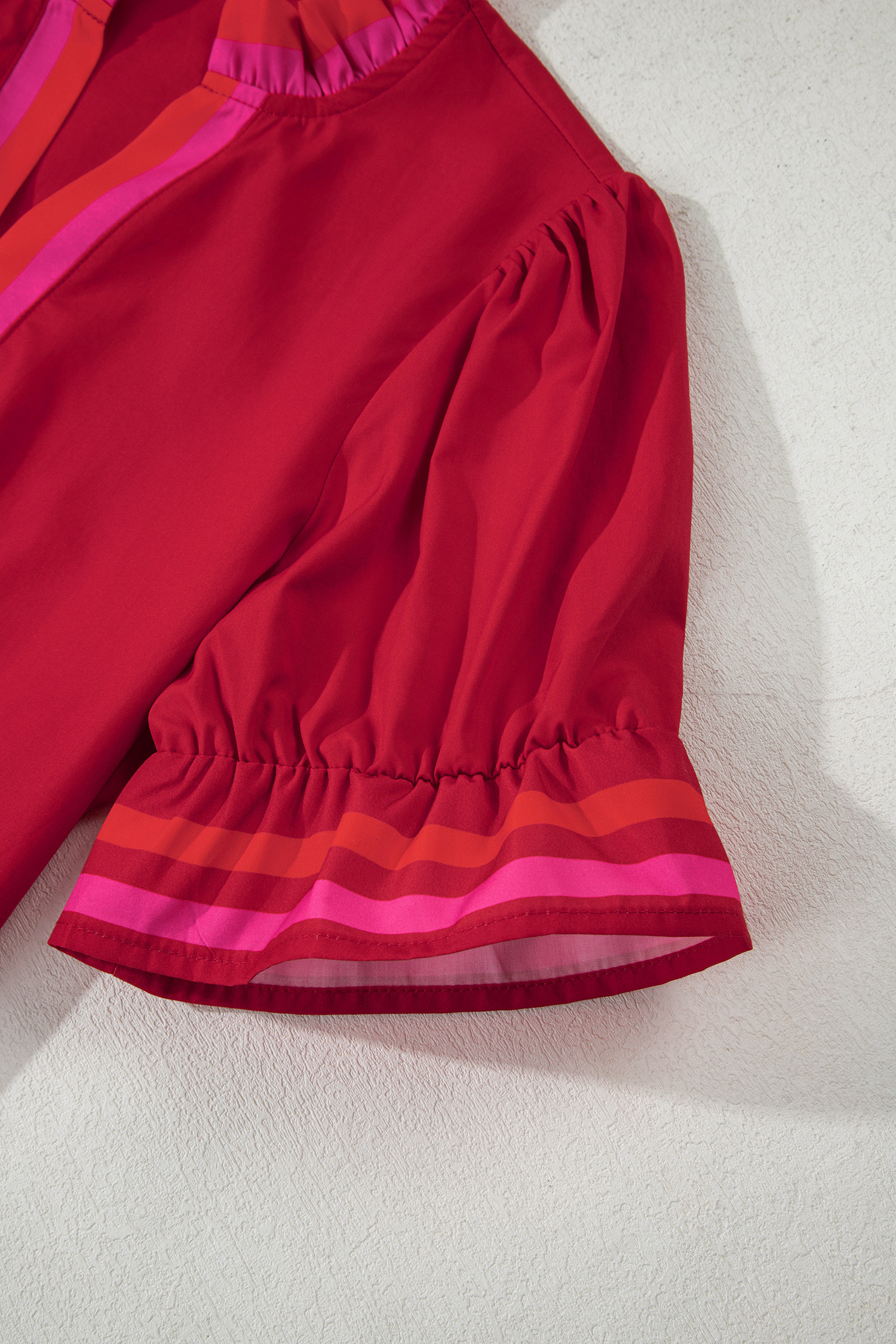Chemisier à rayures rouges flamboyantes, col à volants et manches courtes à volants