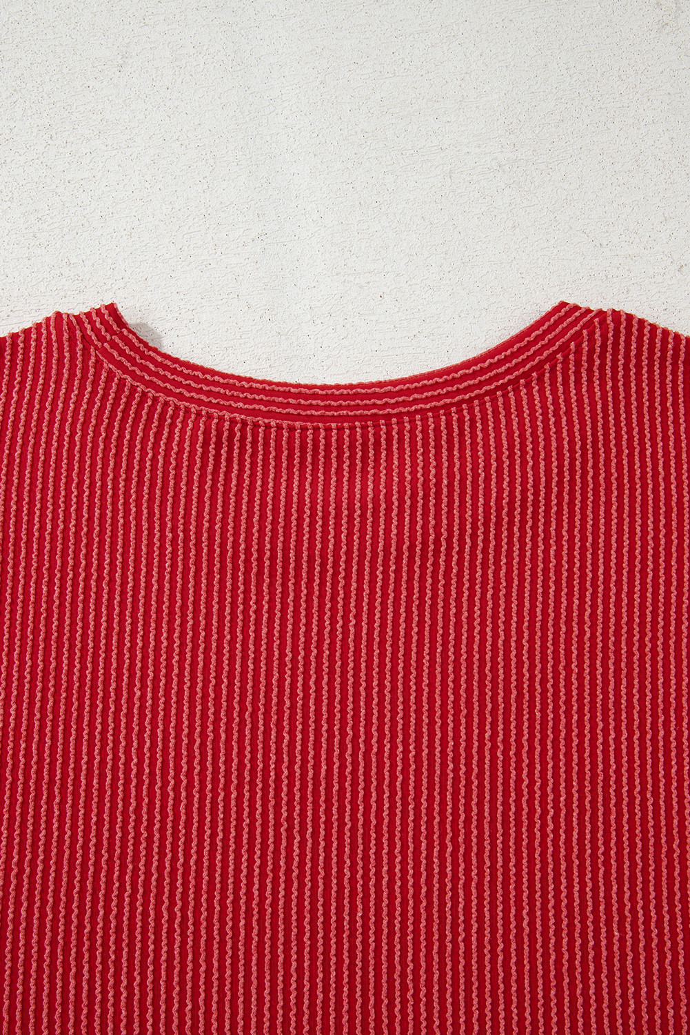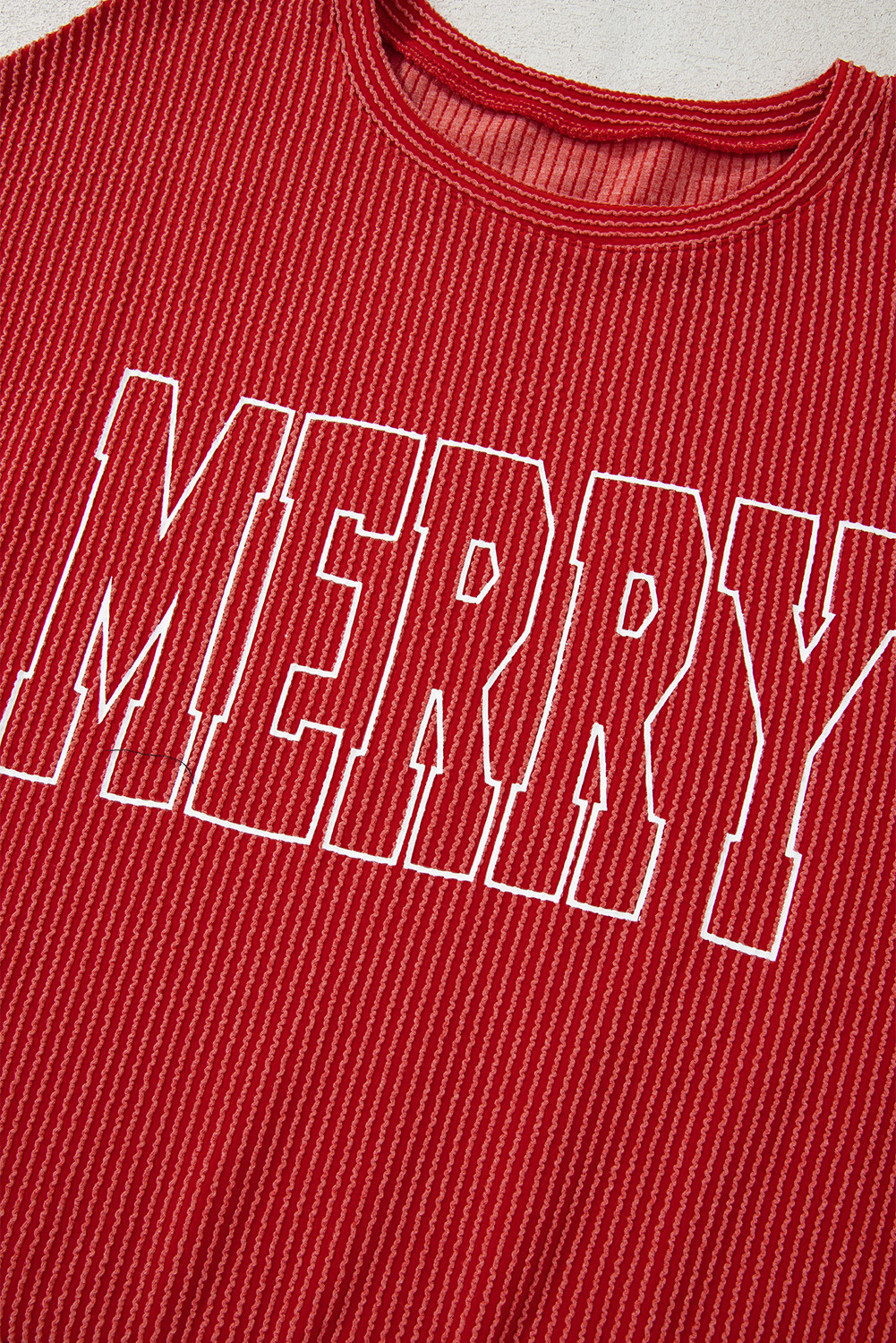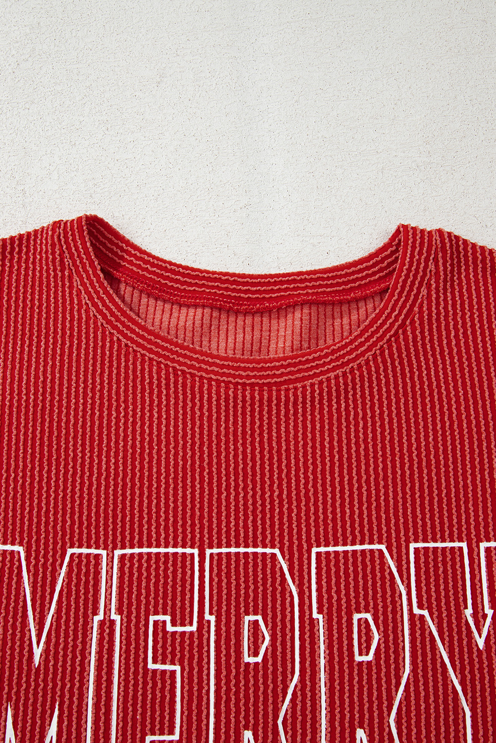 Pull rouge ardent torsadé côtelé à imprimé graphique MERRY, grande taille