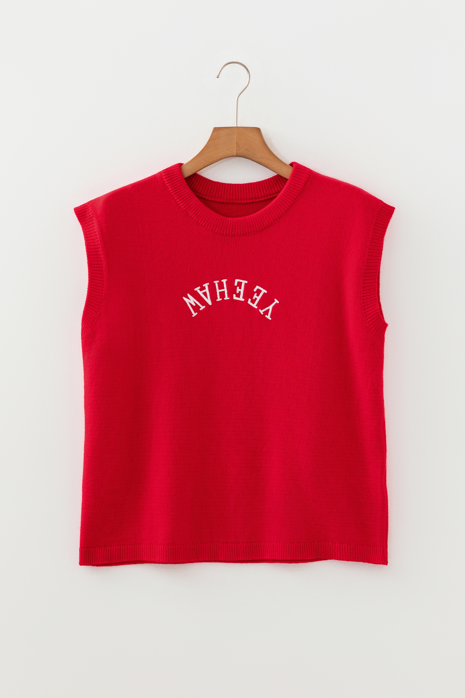 Pull ample à manches courtes avec lettres brodées YEEHAW rouge ardent