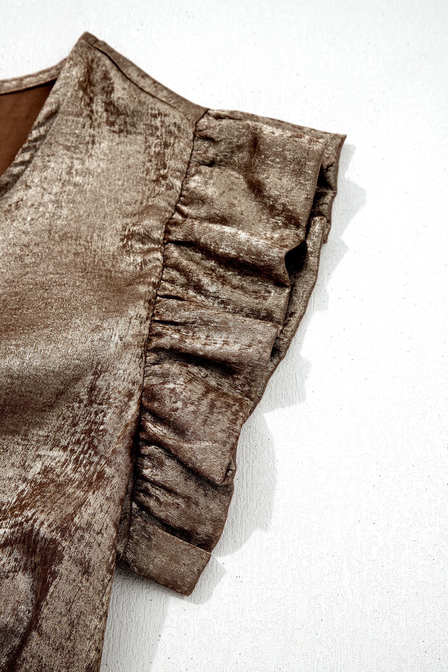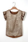 Haut sans manches à col rond et volants métallisés dorés