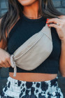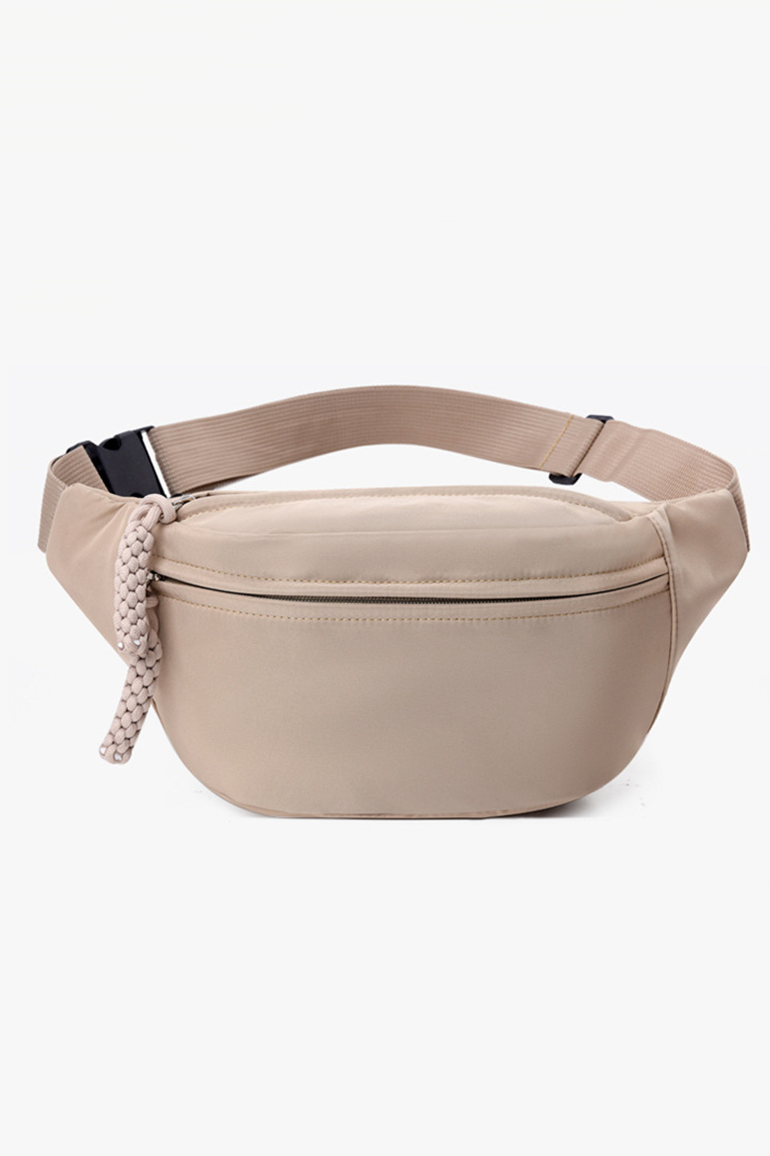 Sac bandoulière gris uni tressé avec fermeture éclair et tirette