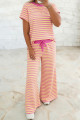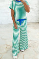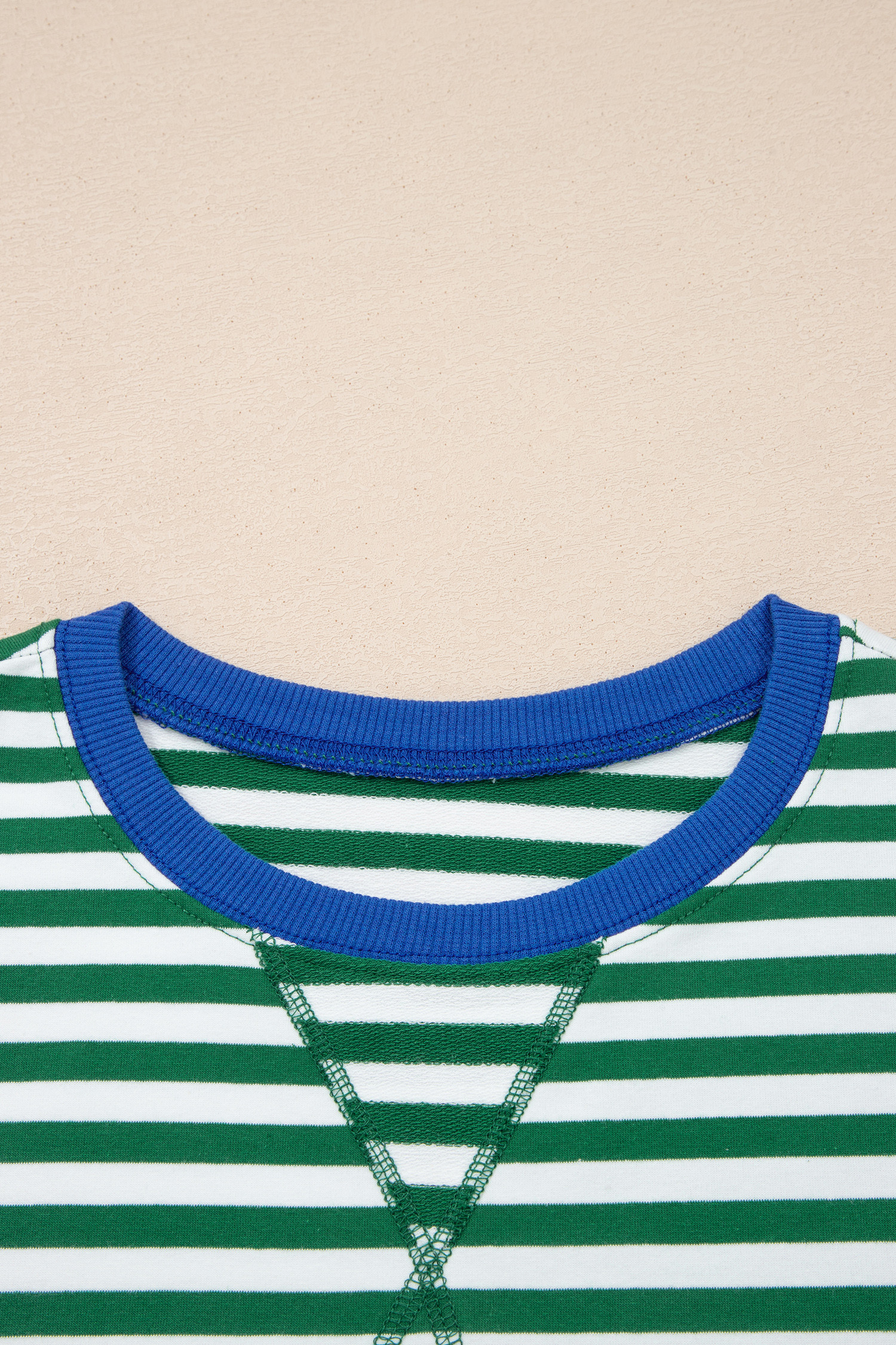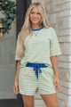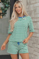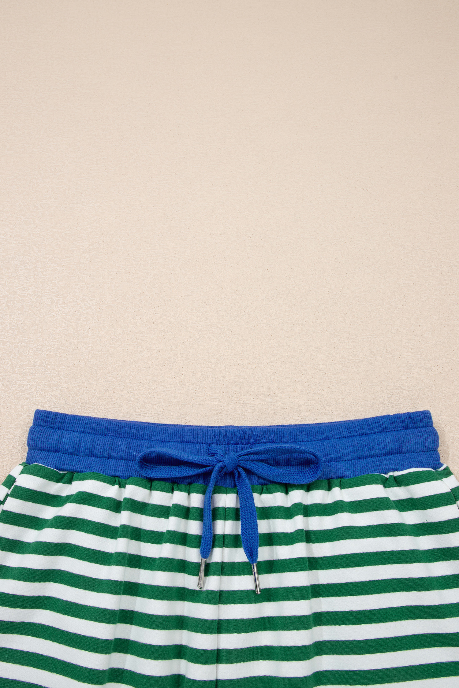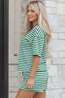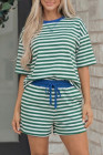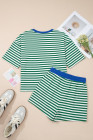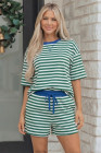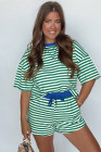Ensemble short décontracté en éponge à rayures vertes et épaules tombantes