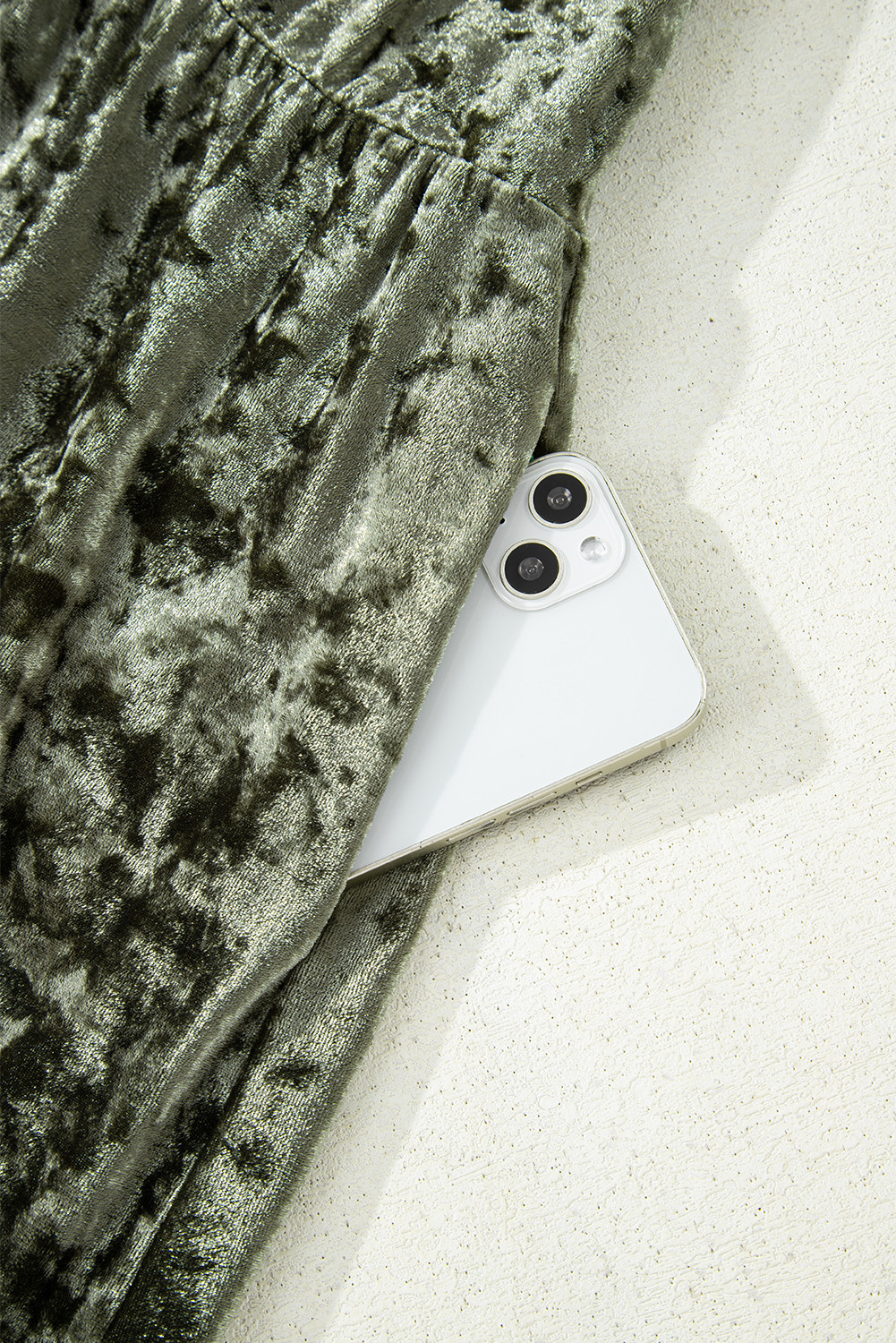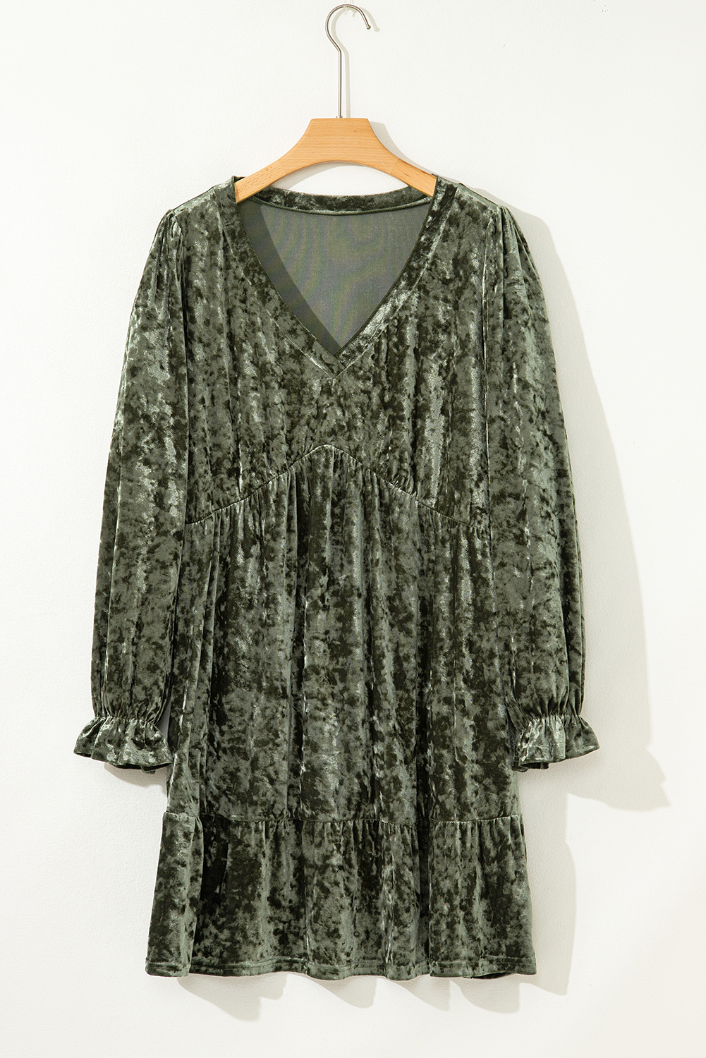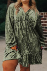 Mini-robe babydoll en velours vert jungle grande taille à manches bouffantes