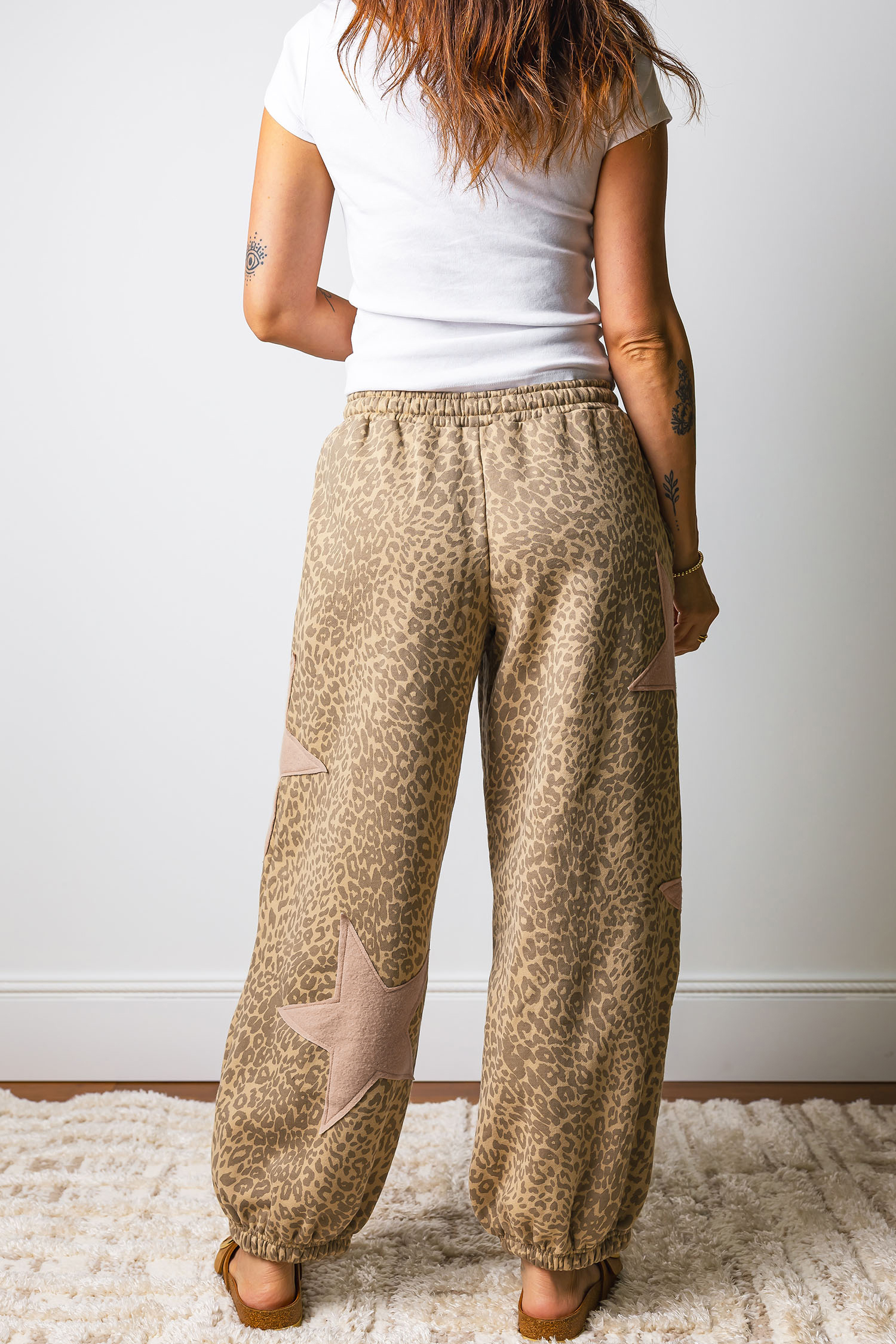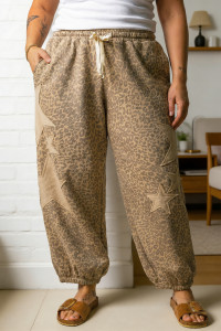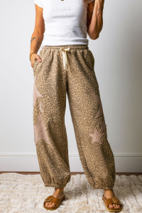 Pantalon de jogging à imprimé léopard et étoiles, taille élastique avec cordon de serrage