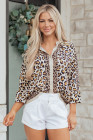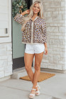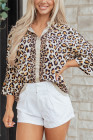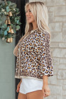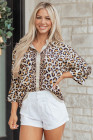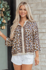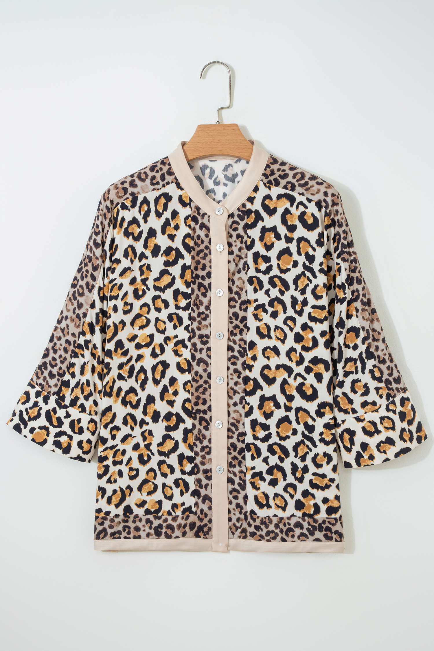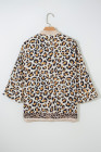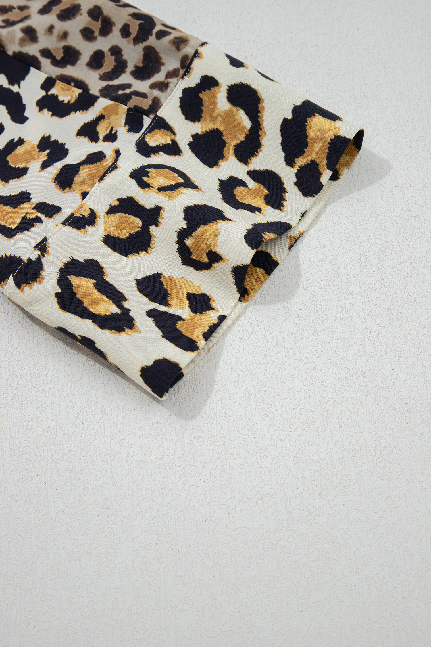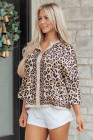 Chemise ample à manches 3/4 en patchwork léopard kaki