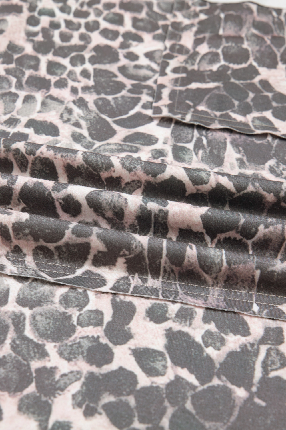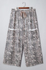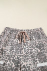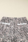 Pantalon ample kaki grande taille à imprimé léopard, bords bruts, poches plaquées, cordon de serrage