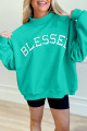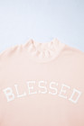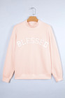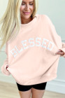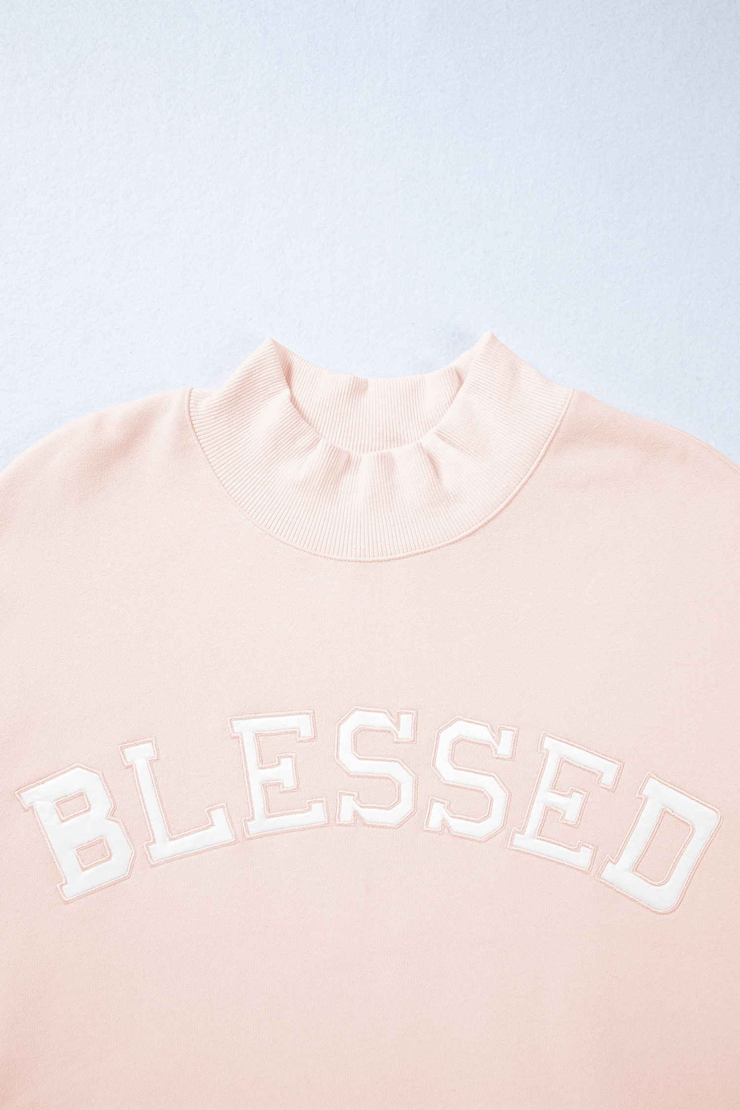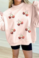 Sweat-shirt oversize rose clair brodé à col montant