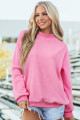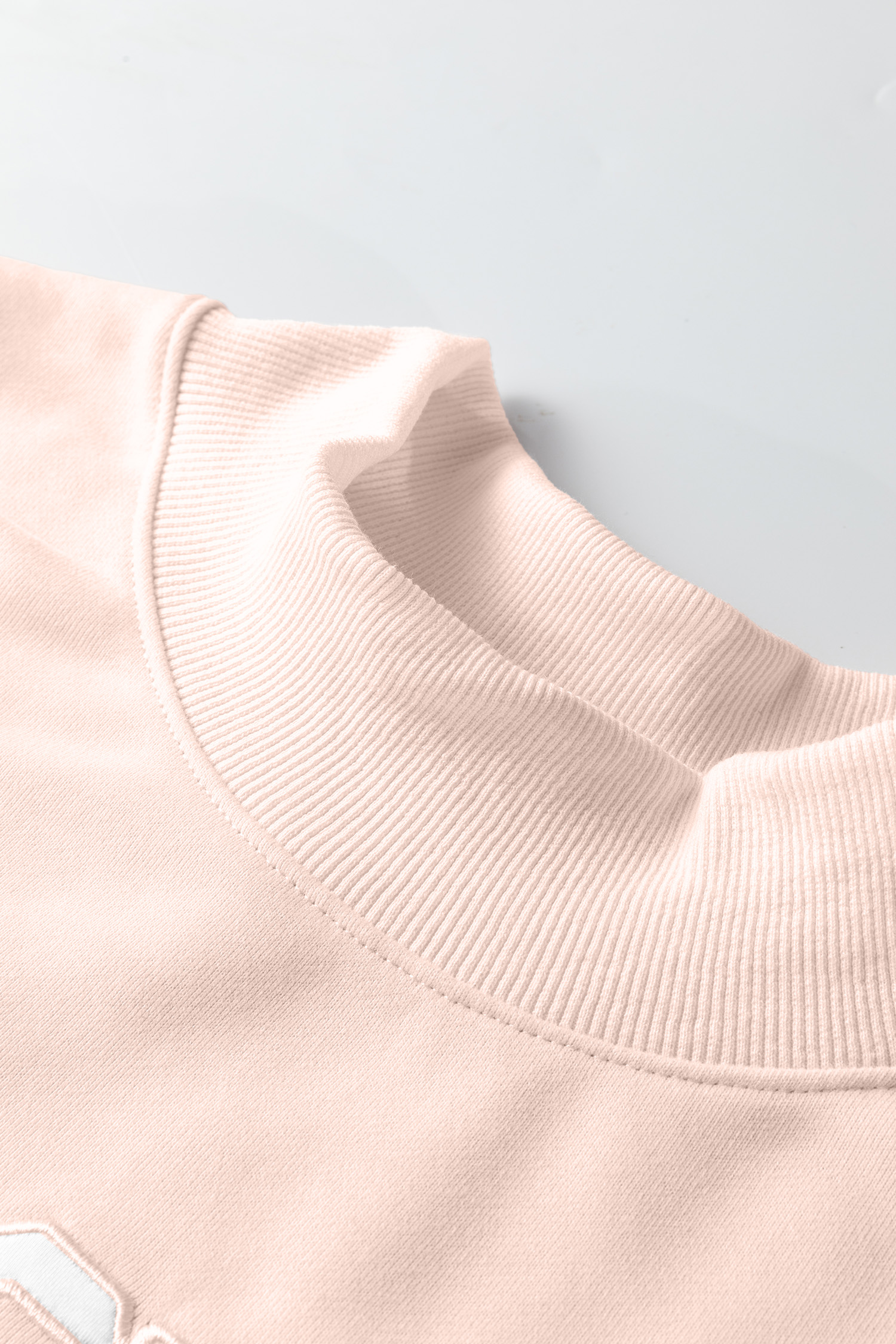 Sweat-shirt oversize rose clair brodé à col montant